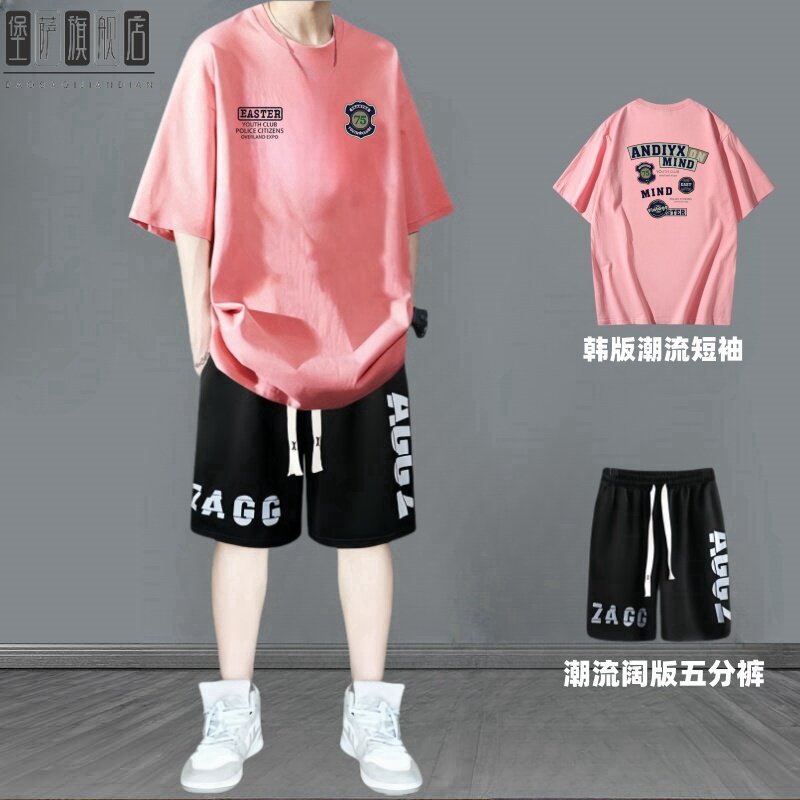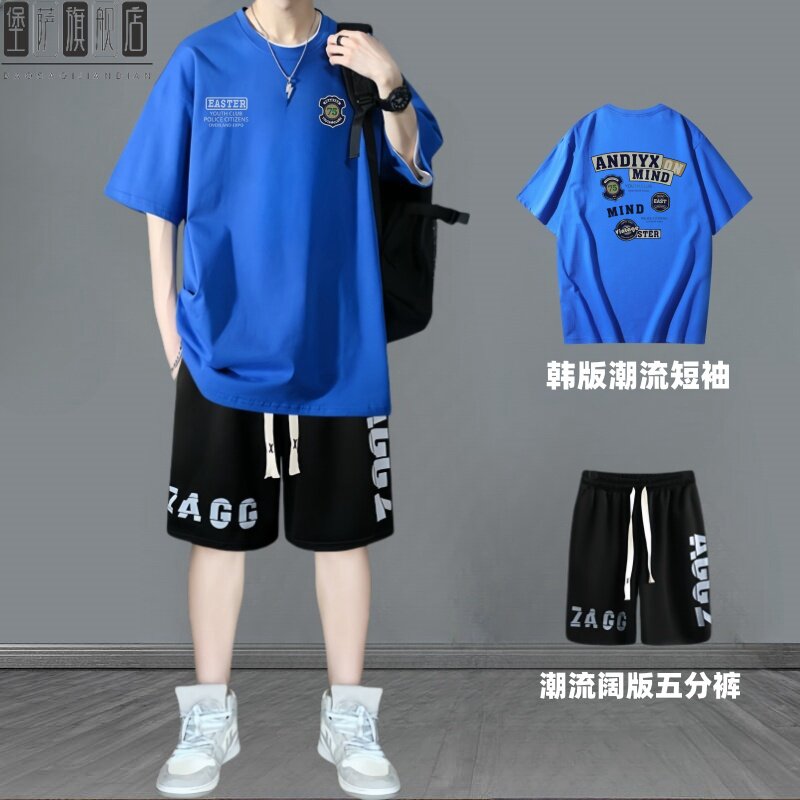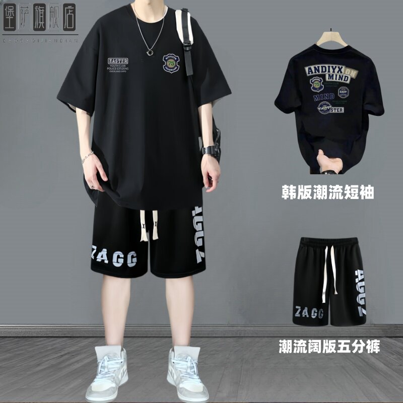 夏季短袖t恤青少年2025新款男士潮流纯棉半袖衣潮牌宽松百搭套装