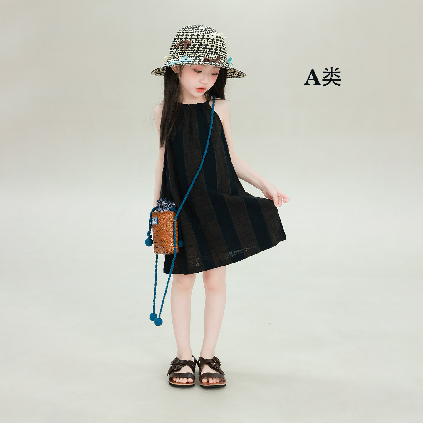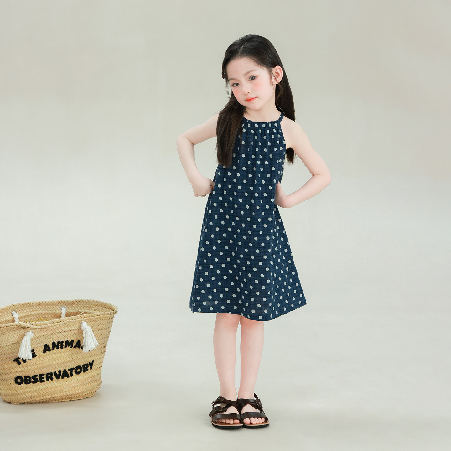 大耳象女童圆点条纹吊带裙2026夏季新款宝儿休闲小众无袖连衣裙子
