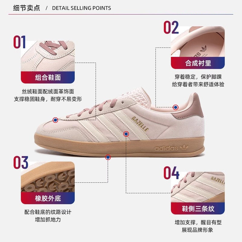 阿迪达斯粉色德训鞋女鞋2026春季新款运动鞋低帮休闲鞋三叶草鞋子