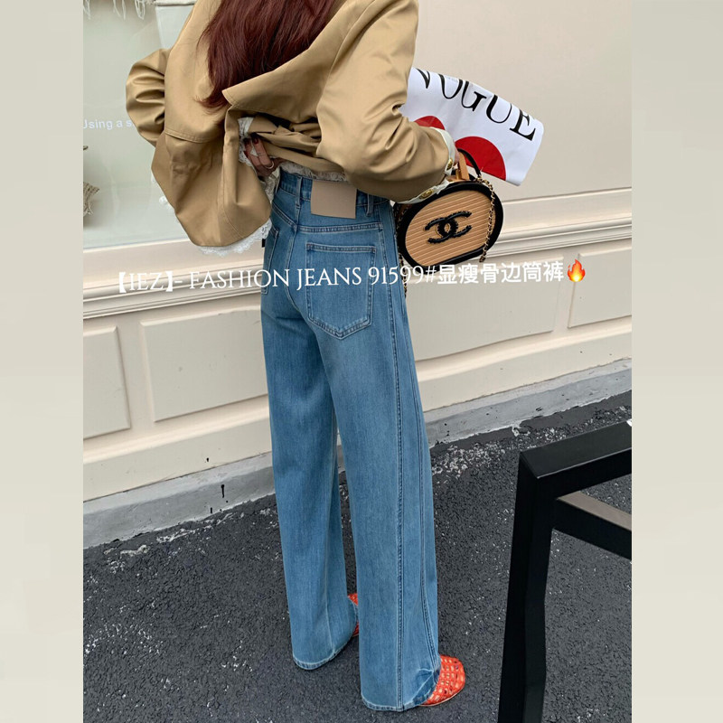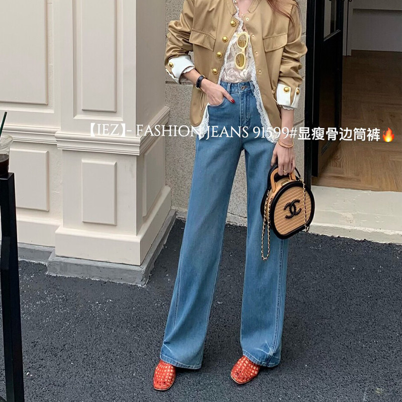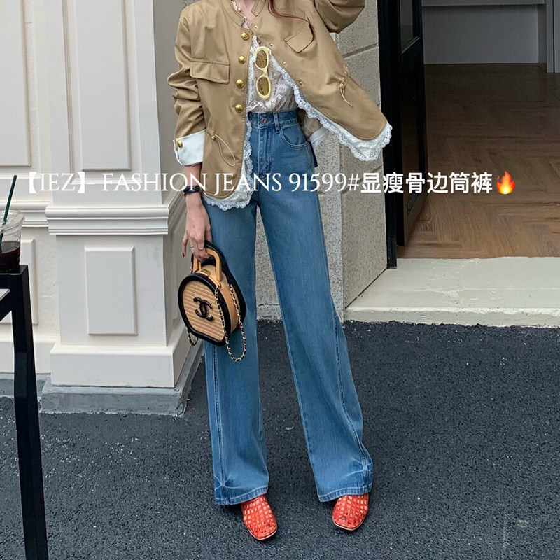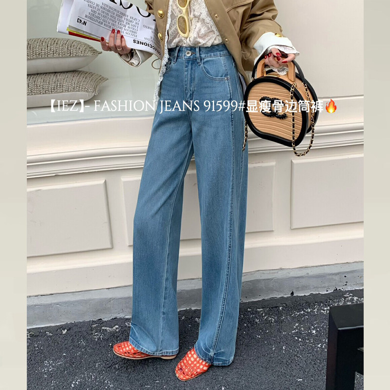 IEZ四面弹鱼骨边直筒牛仔裤女2026新款今年流行爆款裤子女款长裤