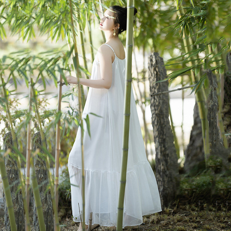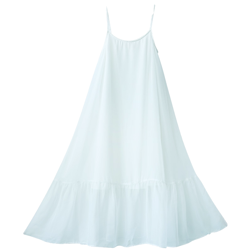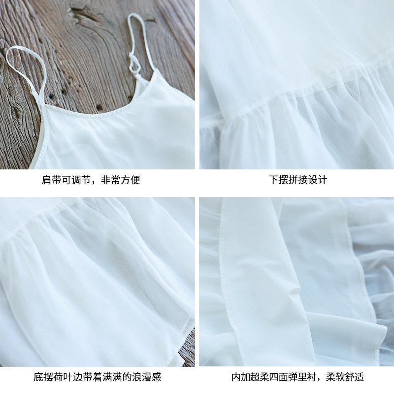 现货【香云薄纱】夏季雪纺吊带连衣裙女新款白色仙气荷叶边长裙子