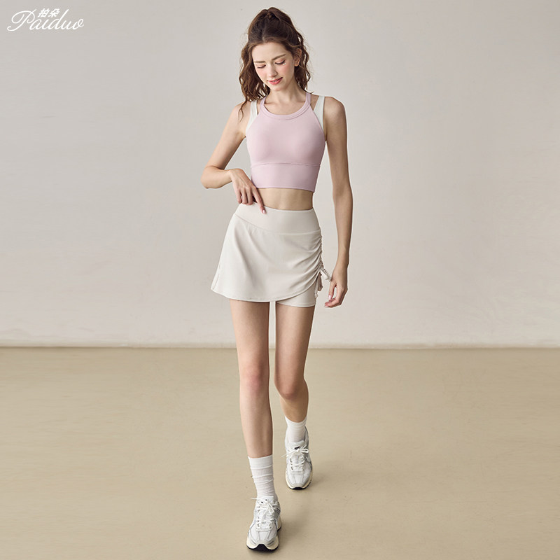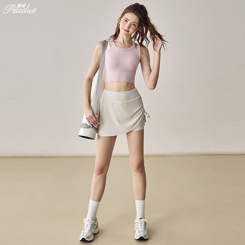 拍朵假两件运动套装女紧身显瘦瑜伽服上衣跑步训练健身背心外穿新