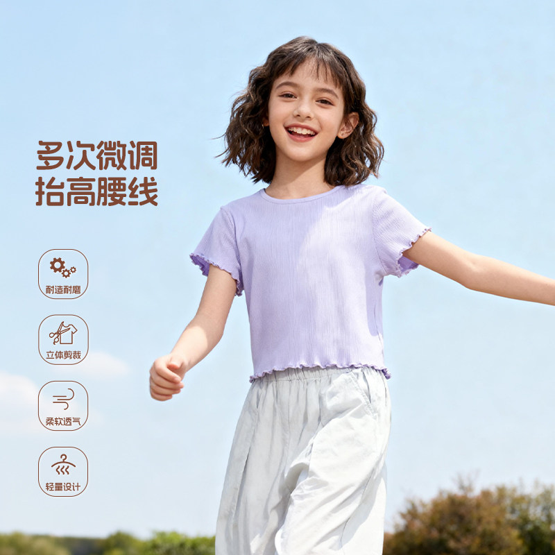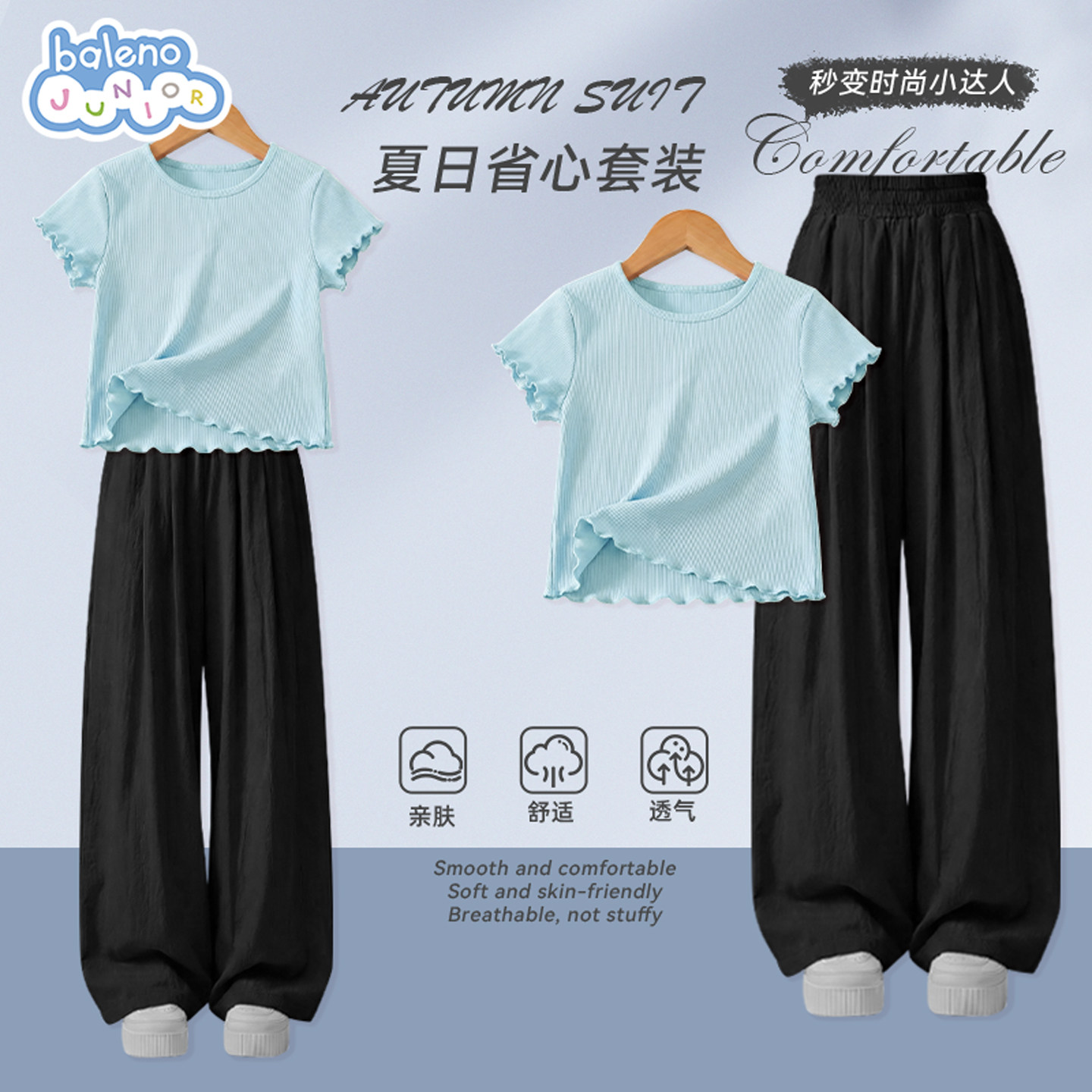 班尼路童装女童运动套装夏款2026新款儿童洋气短袖t恤大童阔腿裤