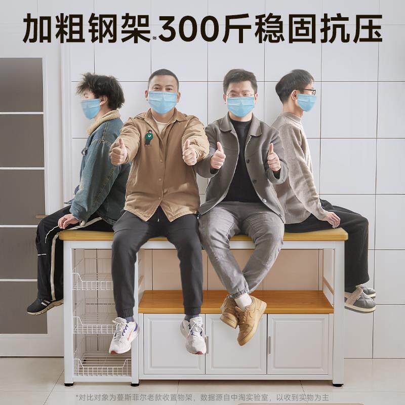 厨房置物架多功能菜篮子切菜工作台微波炉收纳架边柜多层桌带柜门