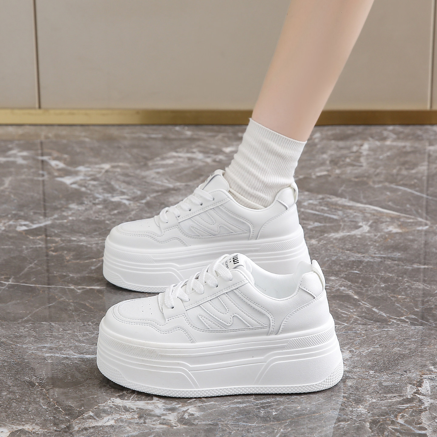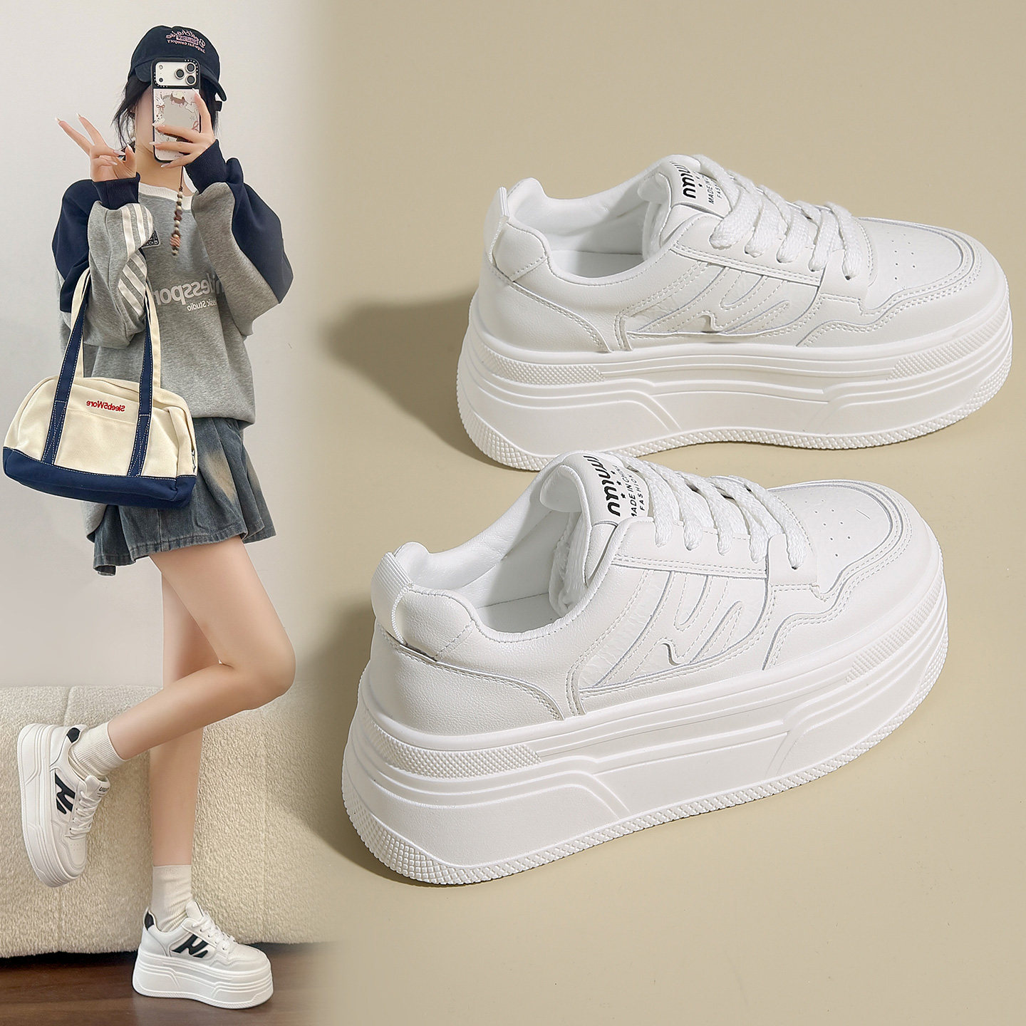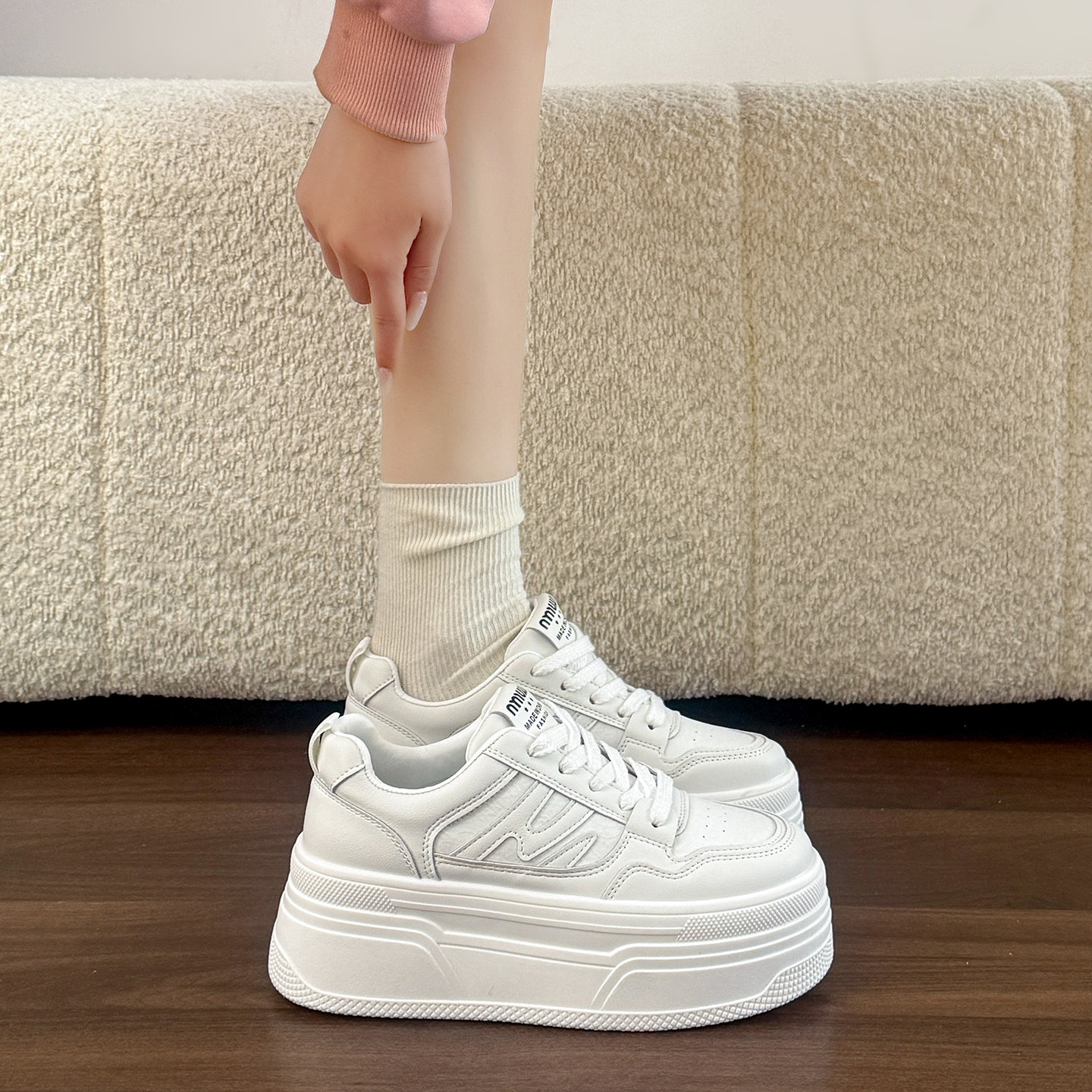 踩屎感小个子内增高真皮小白鞋女34码超厚底运动休闲板鞋配裙子潮