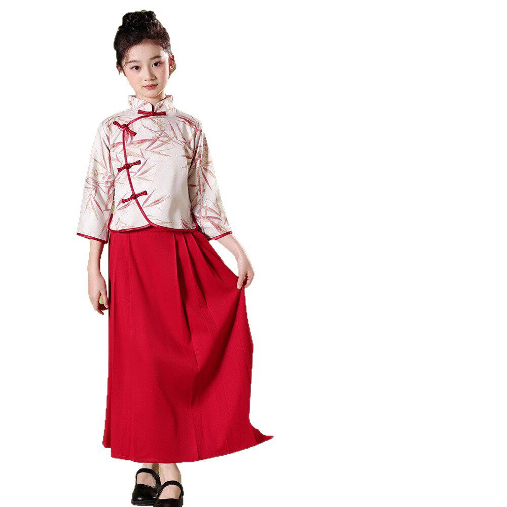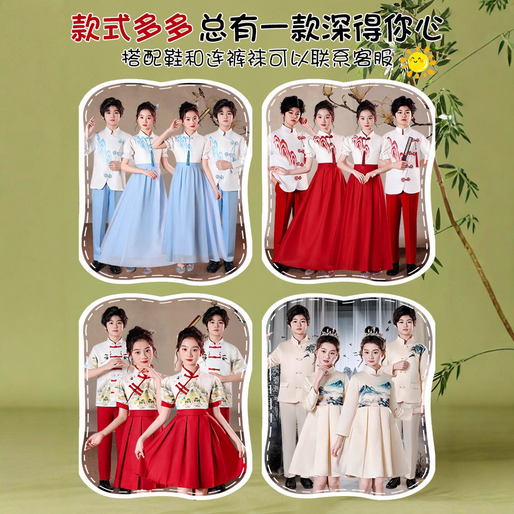 儿童初中小学生男女童合唱中国风红色爱国礼服演讲朗诵比赛演出服