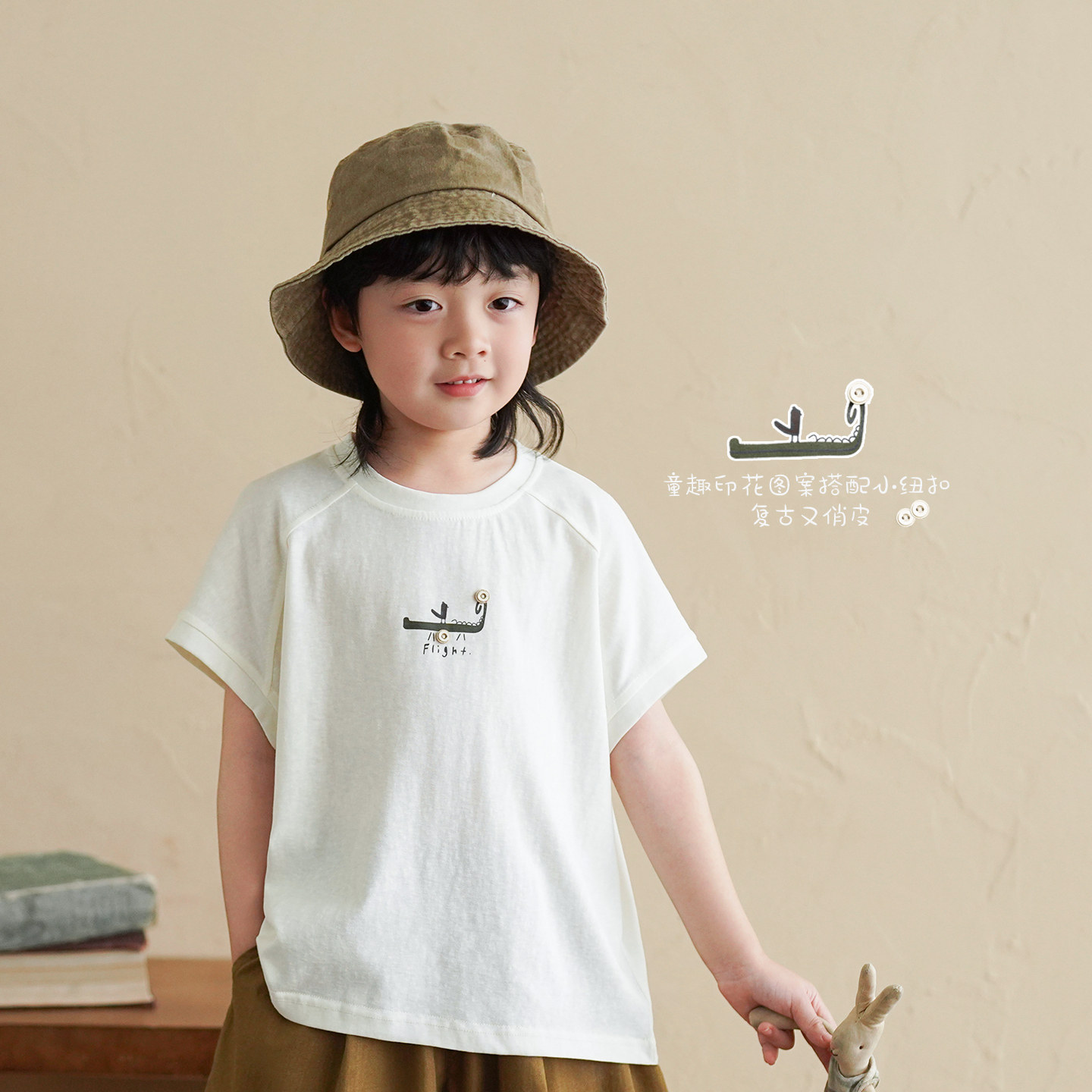 砚台家童装儿童印花插肩袖T恤夏装衣服宝宝半袖上衣男童白色短袖