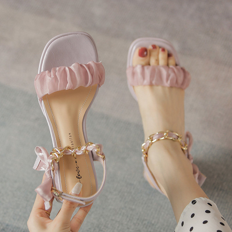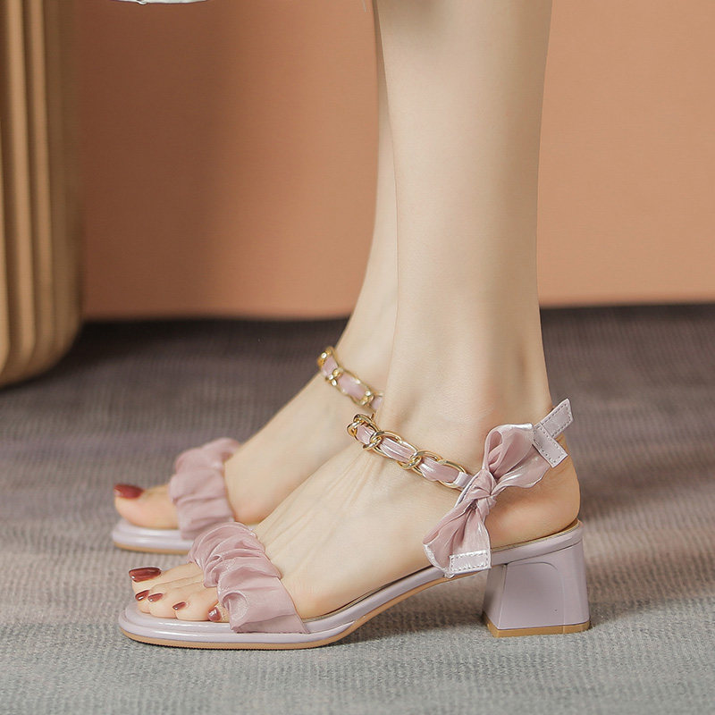 洋气白色外穿凉鞋女款夏季2026年新款百搭不累脚夏天鞋子紫色高跟