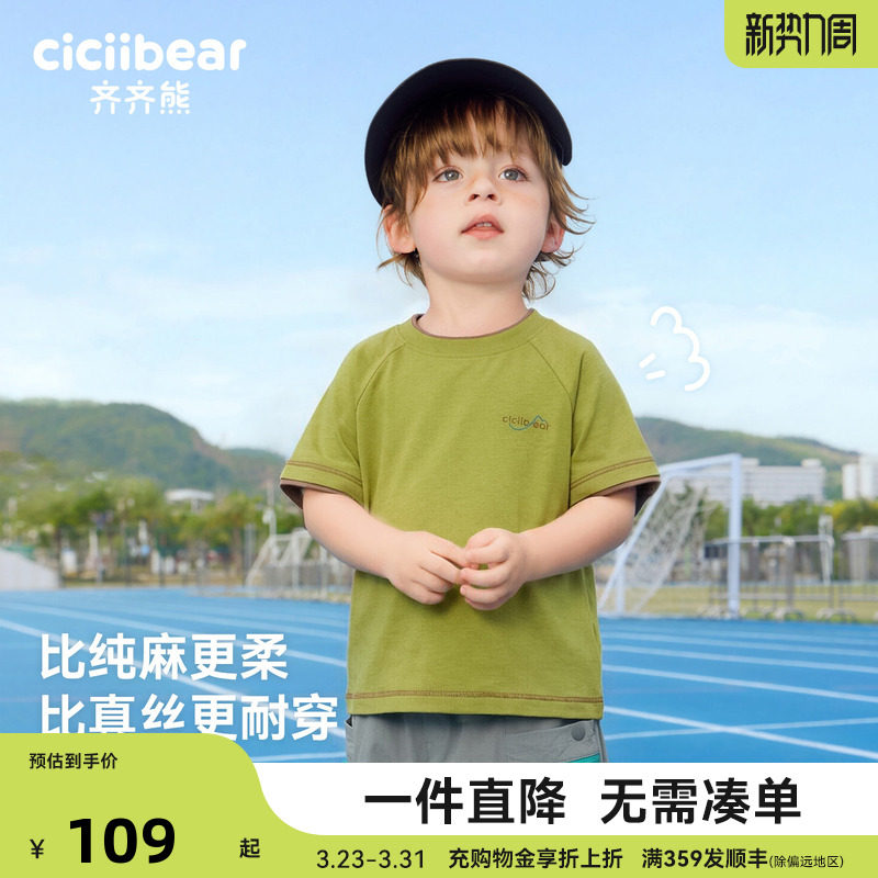 311线报网描述:齐齐熊宝宝夏款汉麻桑蚕丝短袖t恤 抑菌防螨