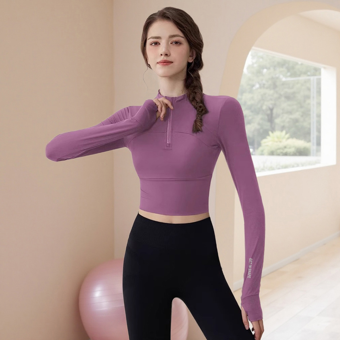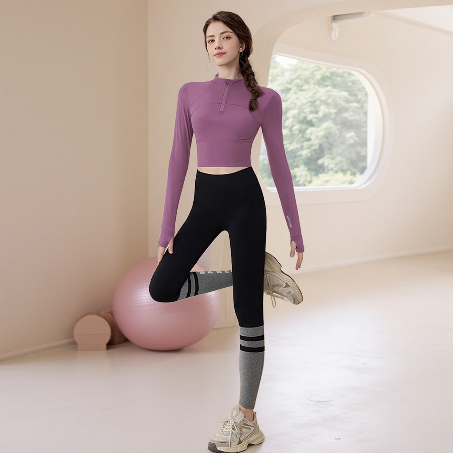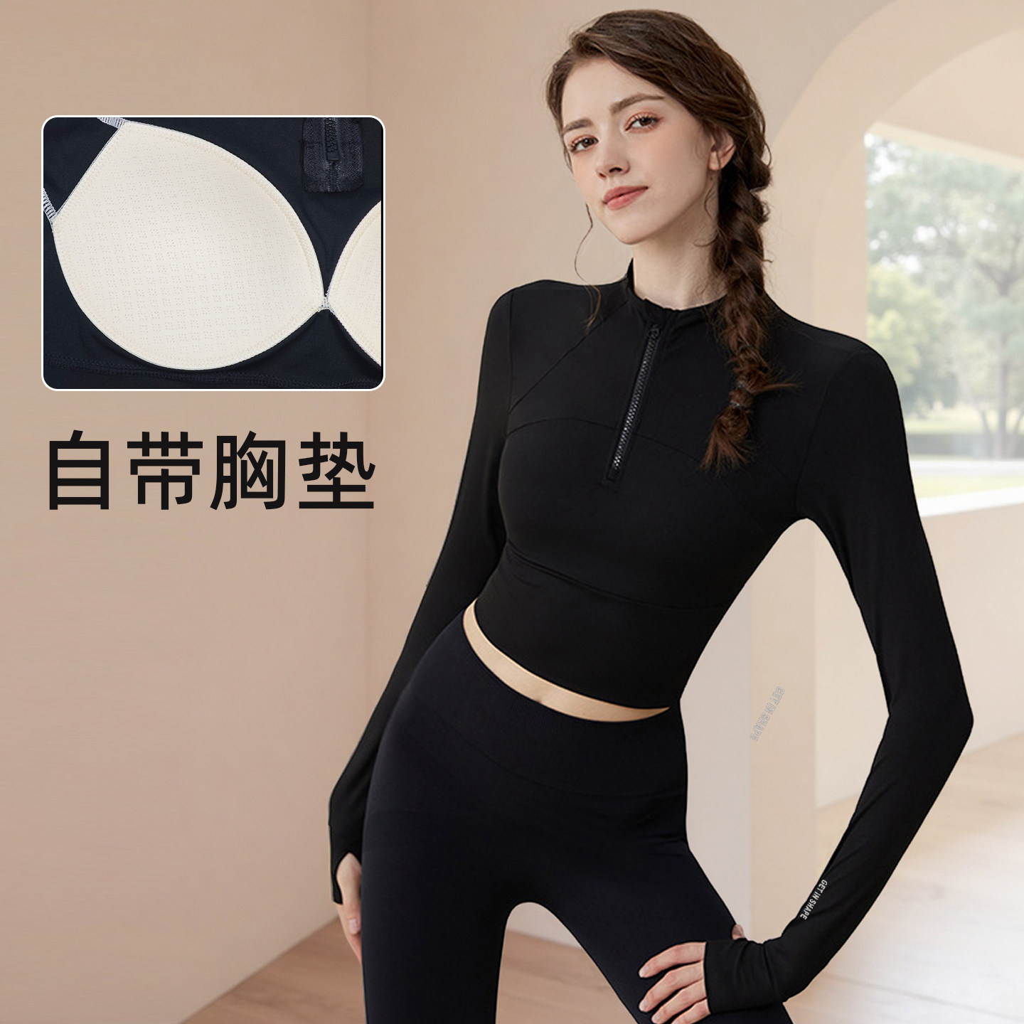 健身服女2026新款专业跑步瑜伽长袖套装显瘦速干带胸垫运动上衣