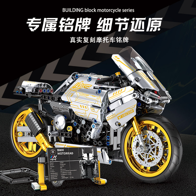 适用乐高铂金版宝马摩托车机车积木M1000r拼装模型机械组男孩玩具