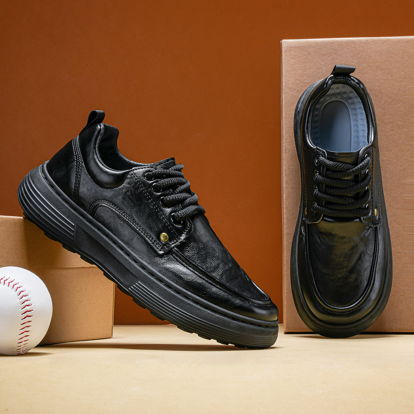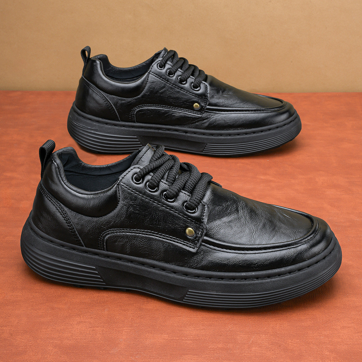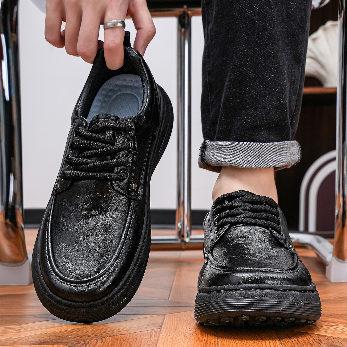 德比男鞋夏季商务休闲增高英伦公务通勤软底舒适上班开车黑色皮鞋