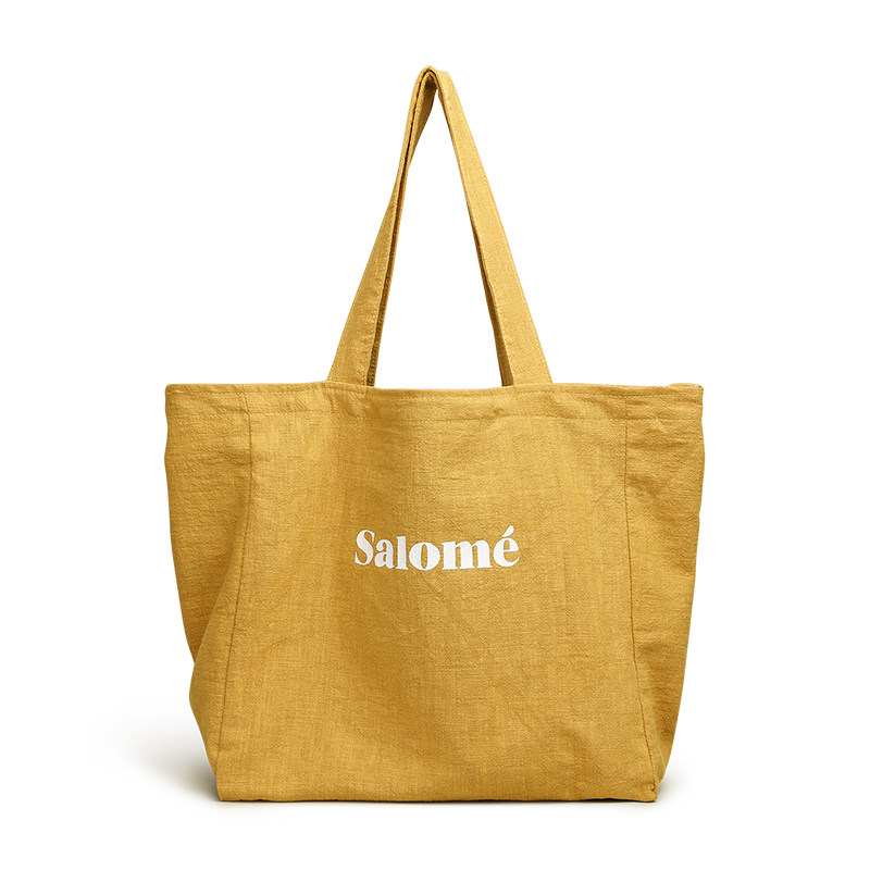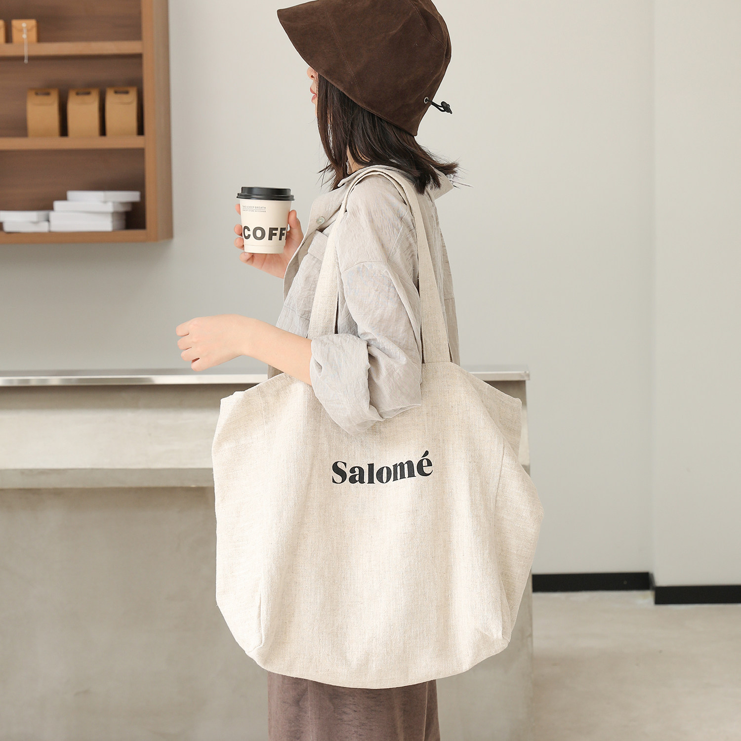 夏季黄色包包女高级感亚麻字母帆布包大容量托特单肩包休闲斜挎包