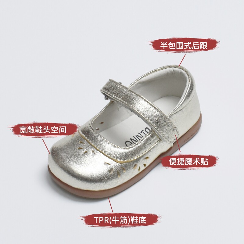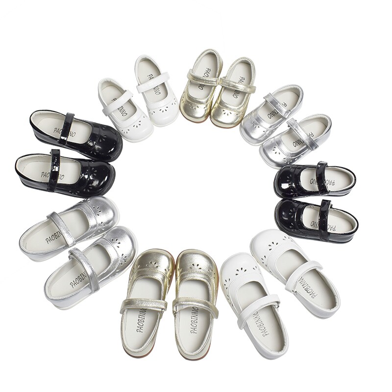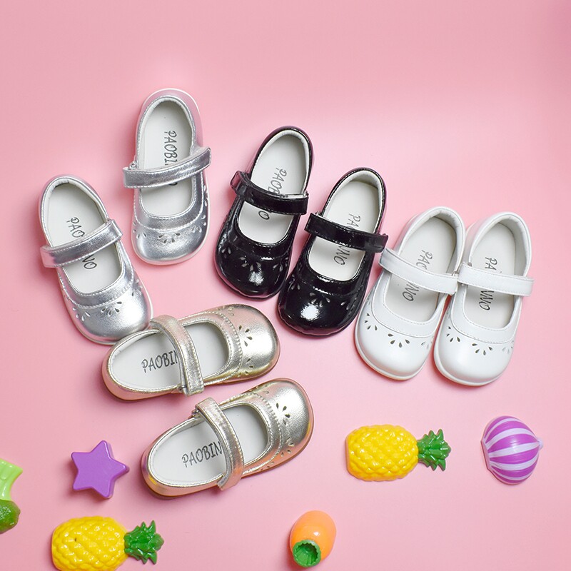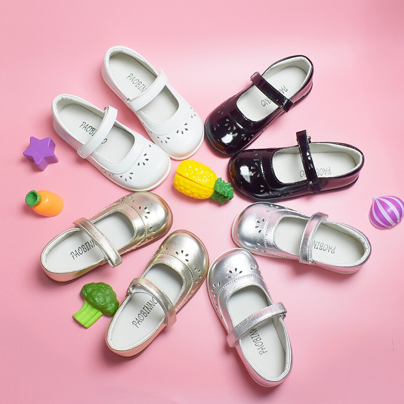 PAOBINNO 春季新款女童公主风真皮鞋羊皮魔术贴防滑耐磨镂空