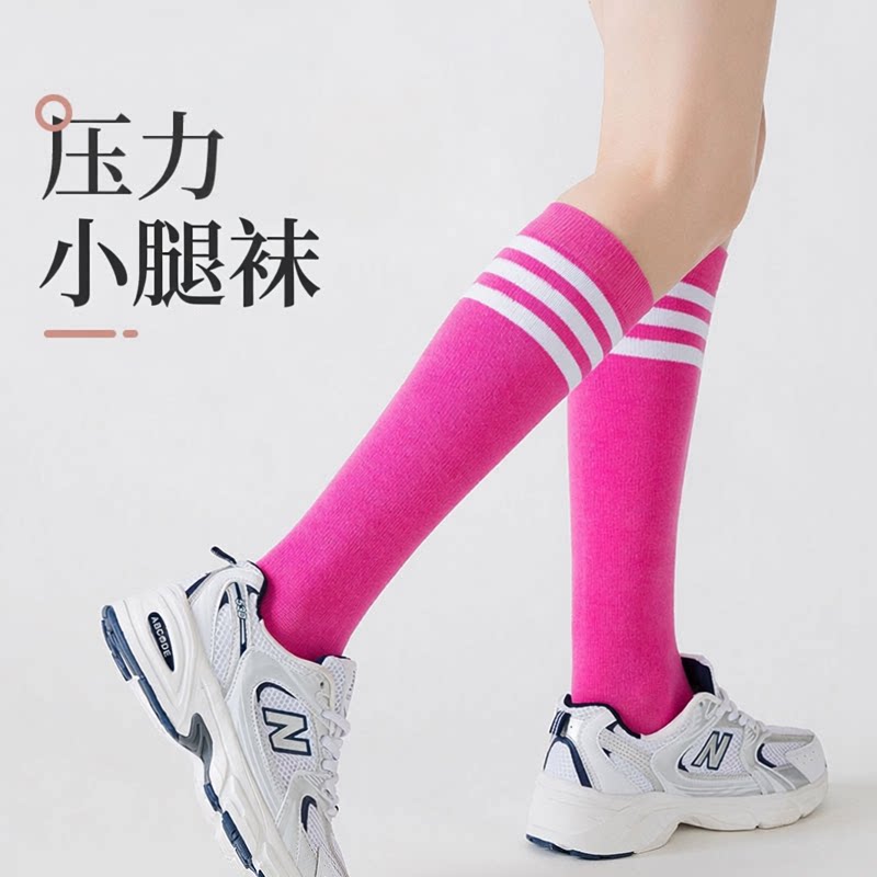 跑步跳绳中筒袜子女运动肌能专业马拉松压力压缩护小腿长筒袜蓝色