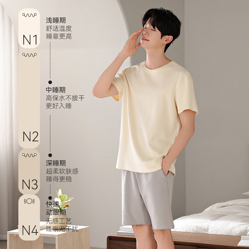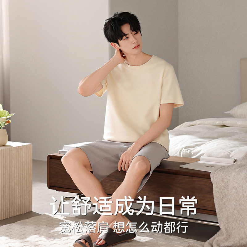 311线报网描述:猫人纯棉睡衣男款夏季短袖短裤2025新款休闲