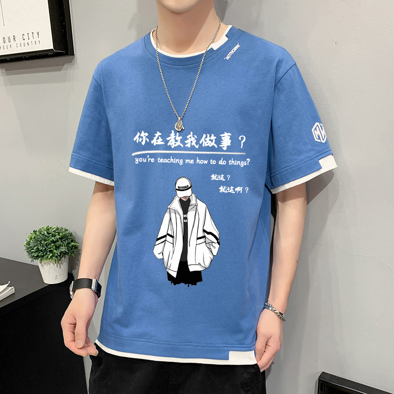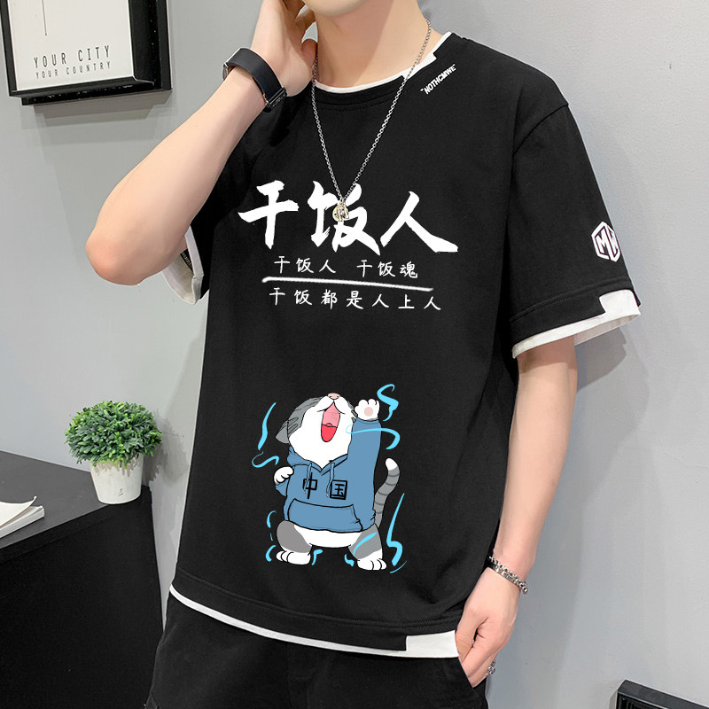 男生短袖t恤ins潮流夏季新款潮牌青少年纯棉体恤加大码宽松上衣服