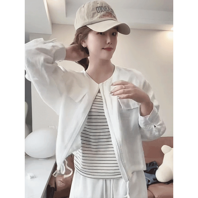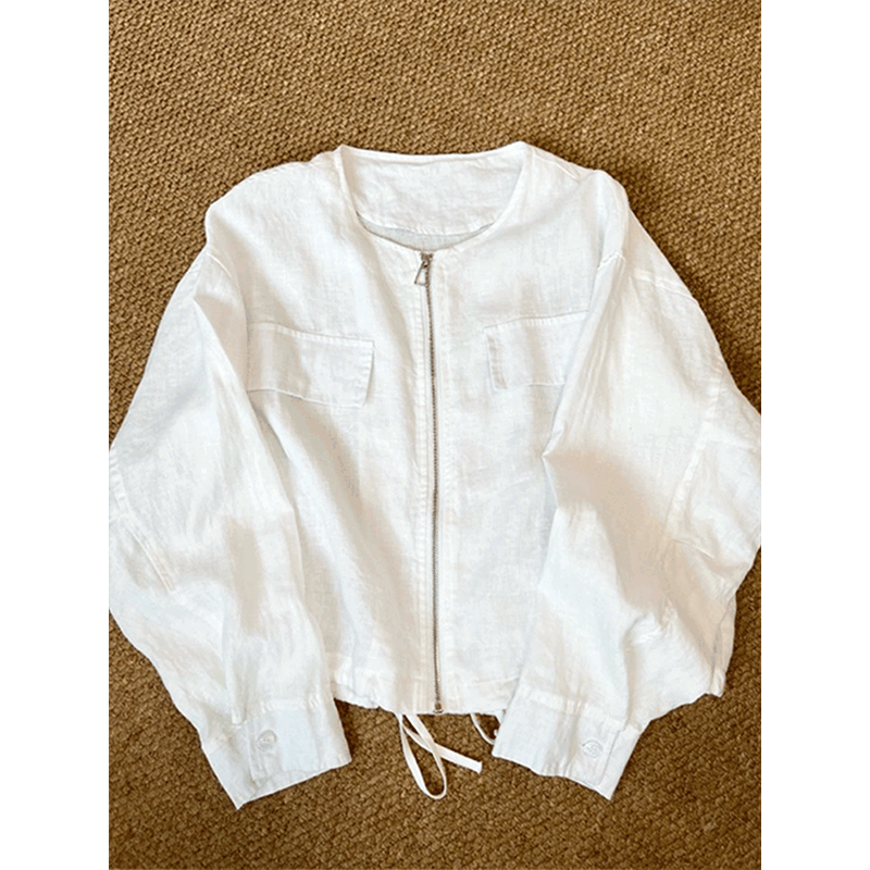 亚麻开衫短款拉链外套女2026新款爆款春装女款休闲百搭薄款上衣女