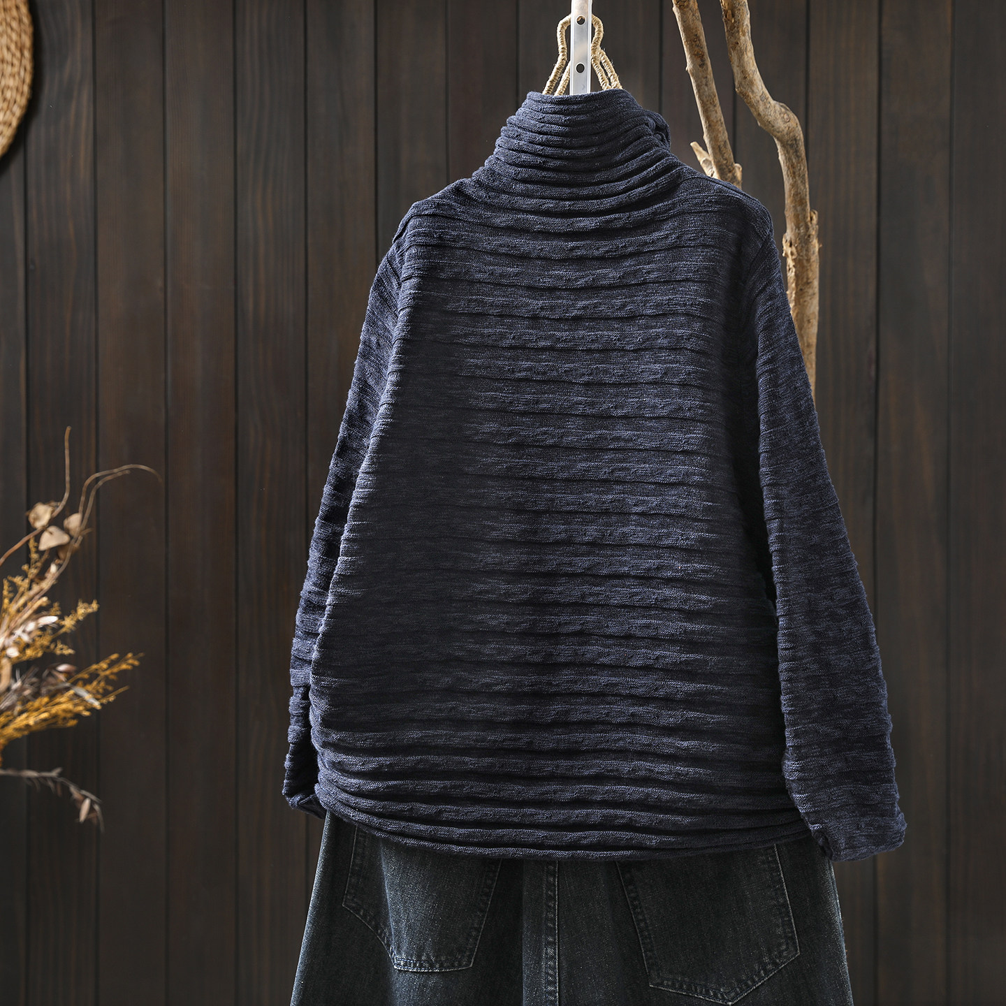 毛衣女款2026新款冬季内搭堆堆领红色棉线针织条纹宽松打底针织衫