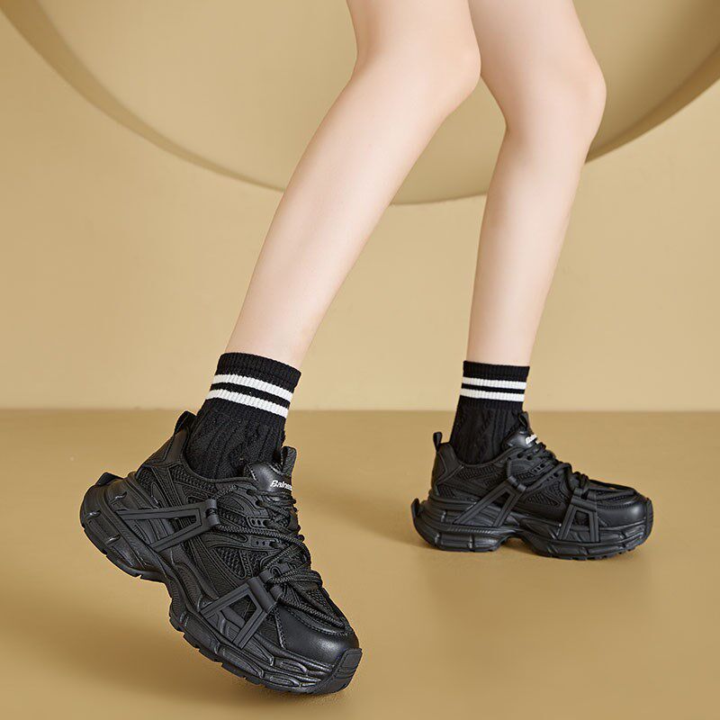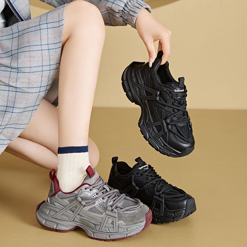 厚底老爹鞋女款2025春夏季新款真皮显脚小黑色增高运动百搭休闲春