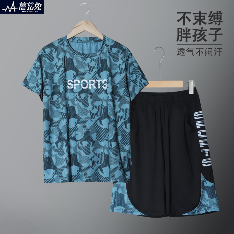 胖男童短袖套装加肥加大夏装胖男孩速干衣两件套薄款运动篮球球服