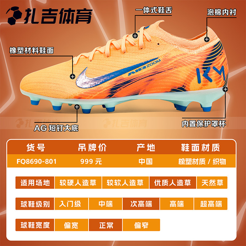 扎吉体育耐克刺客16次高端AG-PRO姆巴佩人工草男足球鞋FQ8690-801
