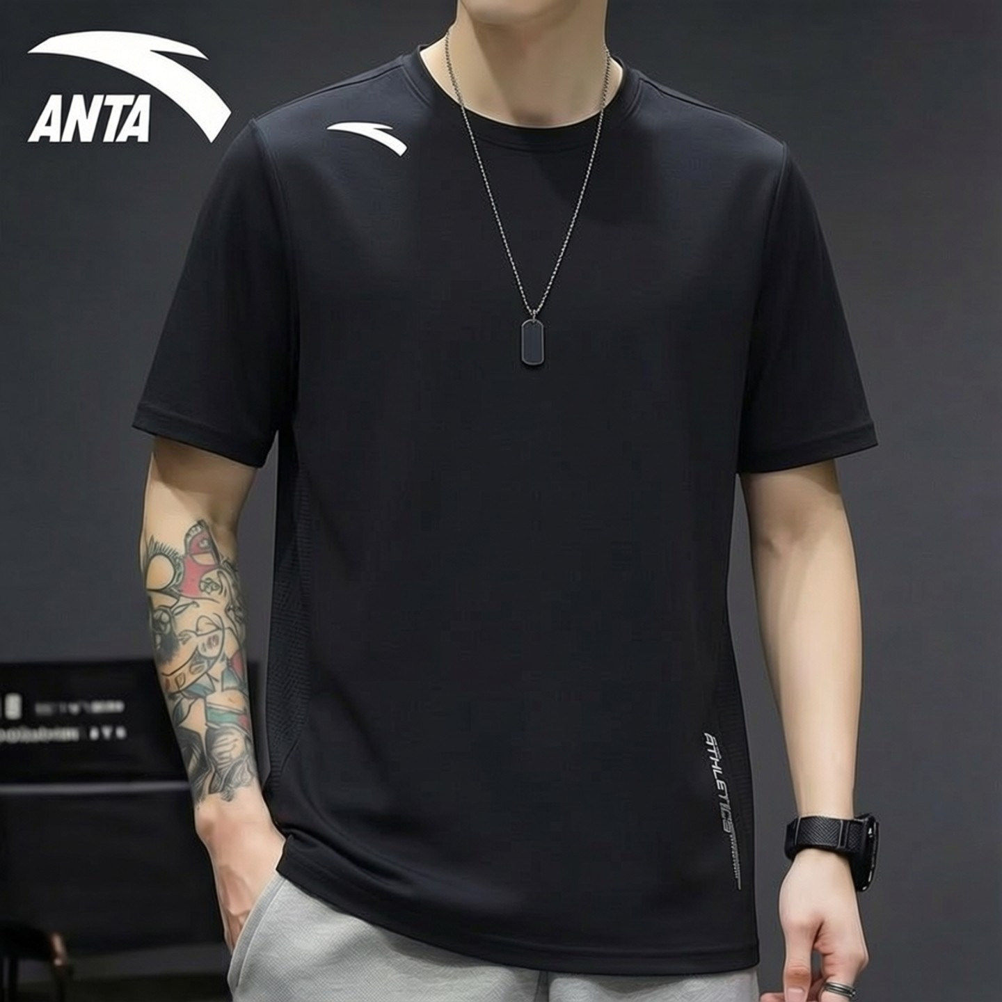 安踏T恤男速干短袖2026新款透气运动服中考体测简约清爽冰丝上衣