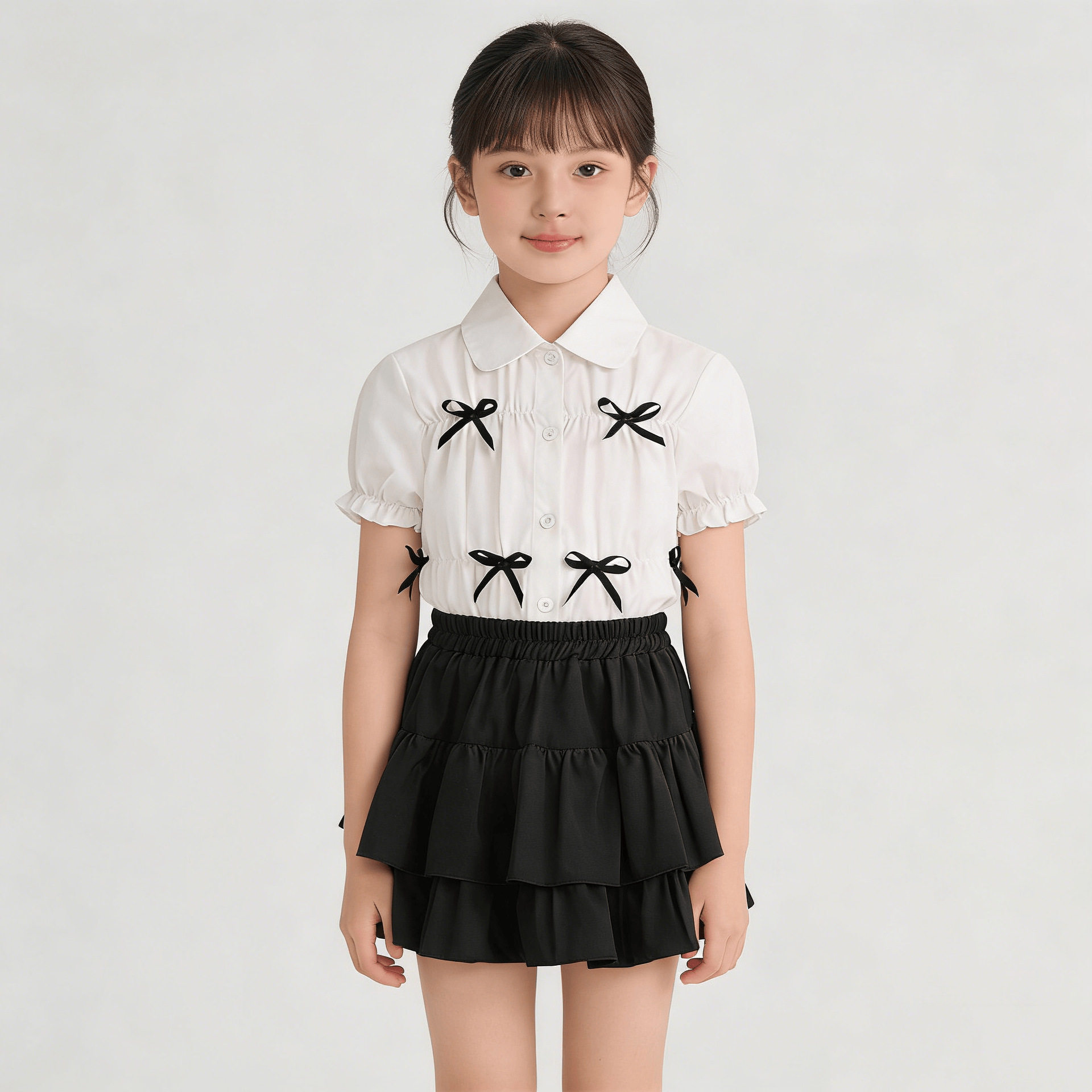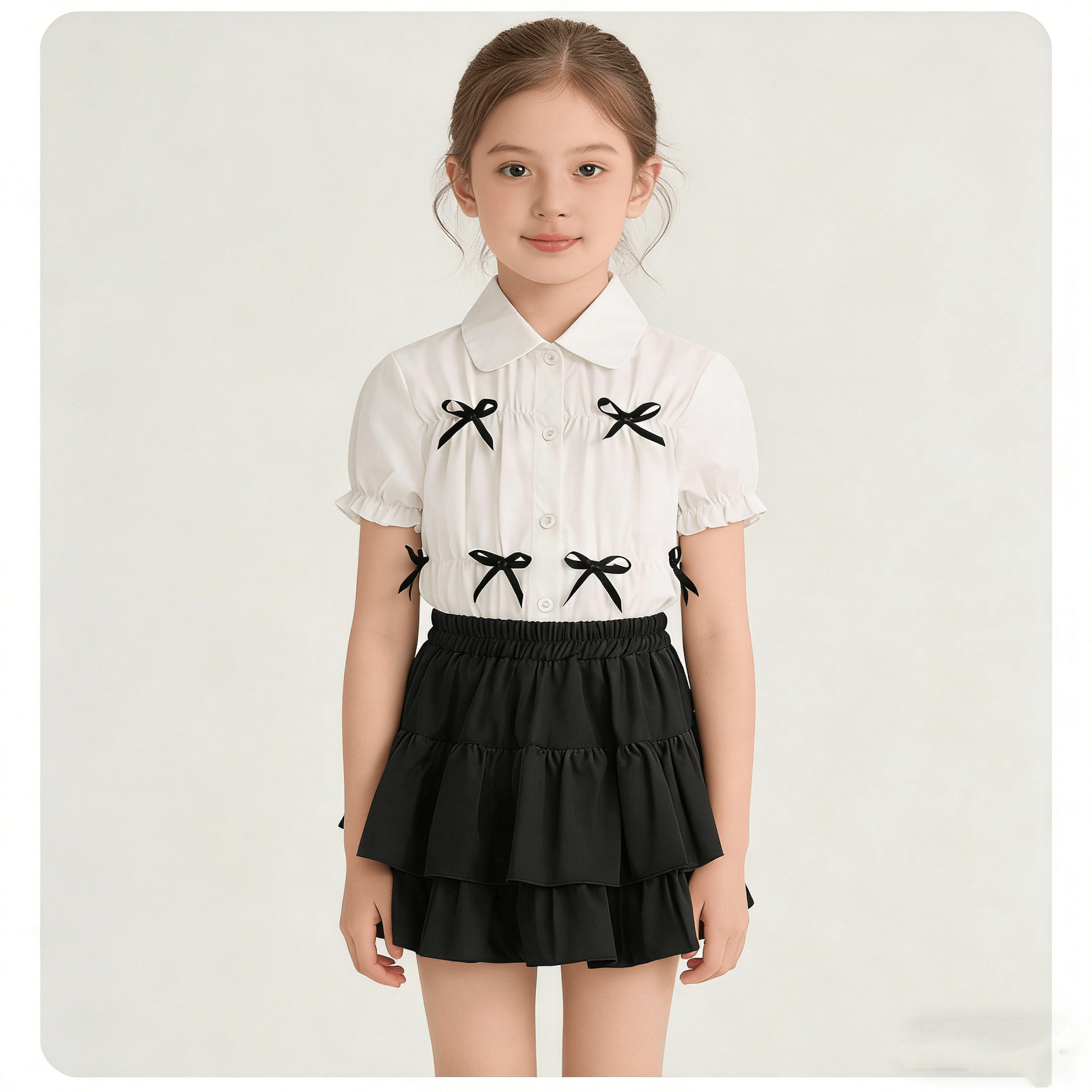 新款2026女童短裙套装洋气小女孩儿童时髦夏季薄款短袖衬衫两件套