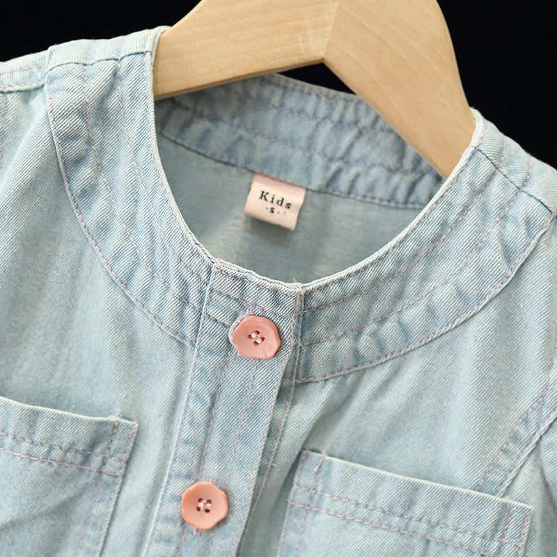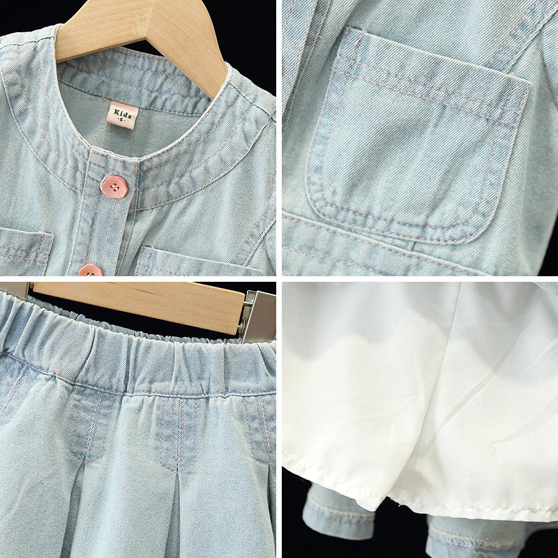 311线报网描述:女童薄款牛仔裙套装夏季儿童无袖上衣短裙