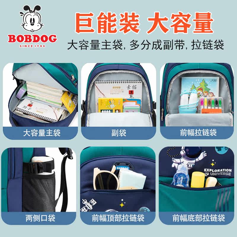巴布豆小学生书包男童三到六年级2023新款女初中生大容量双肩背包