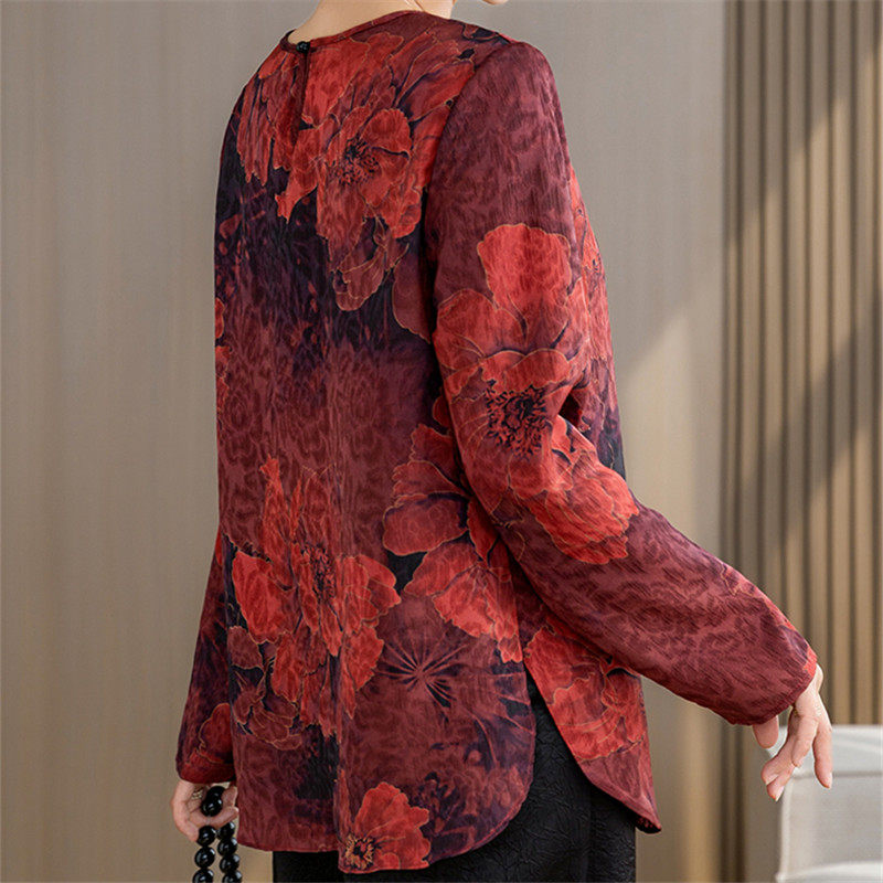 香云纱上衣贵夫人女装大牌清仓高端正品宽松真丝桑蚕丝长袖花小衫
