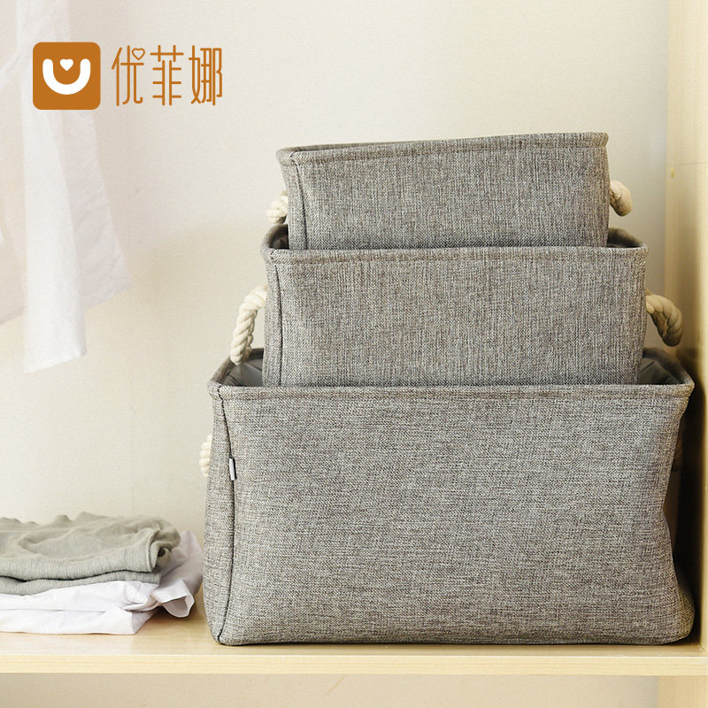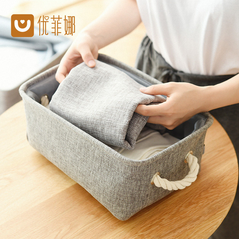 收纳箱大小号码整理箱储物箱亚麻布艺中号内衣服玩具收纳盒家用