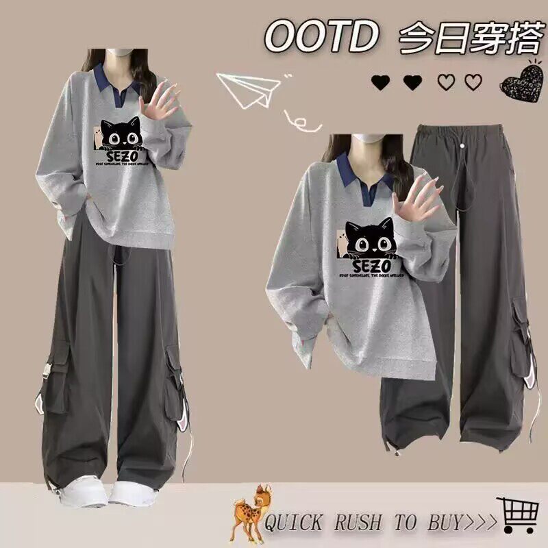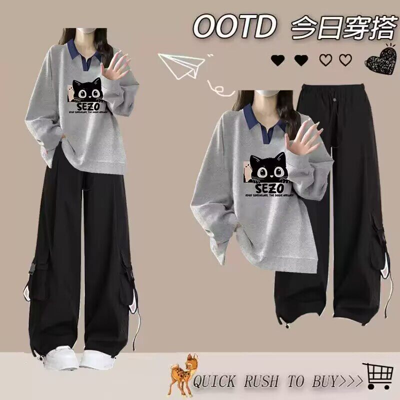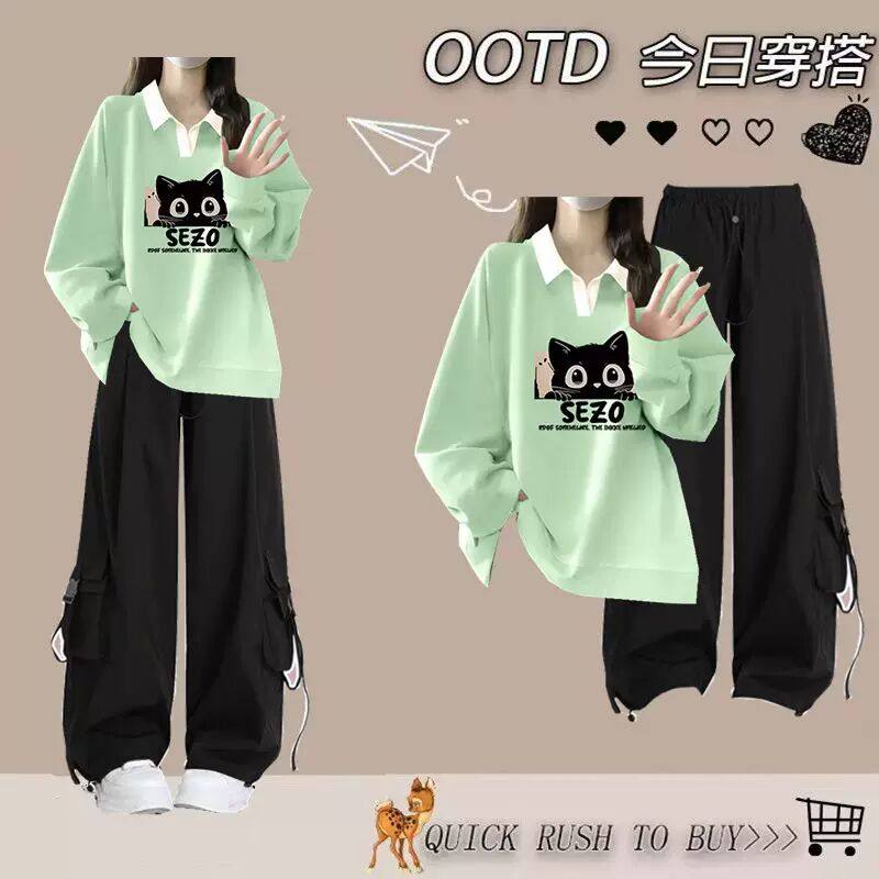 青少年中大童时尚polo领卫衣初中生工装裤套装2025新款穿搭两件套