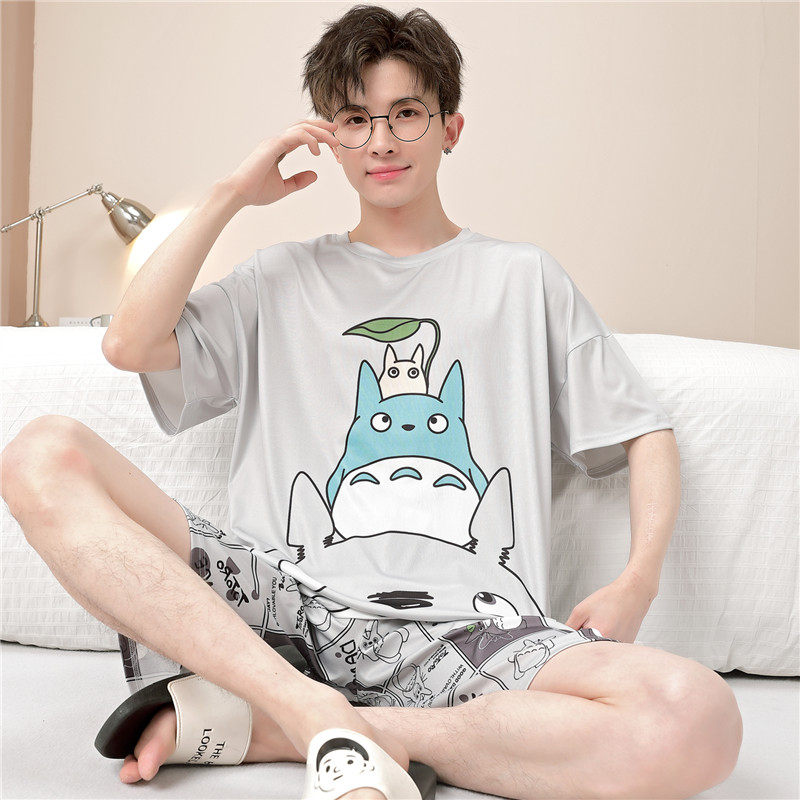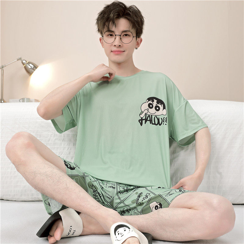 青少年睡衣男孩12岁短袖冰丝15初中学生男童中大童夏天薄款家居服