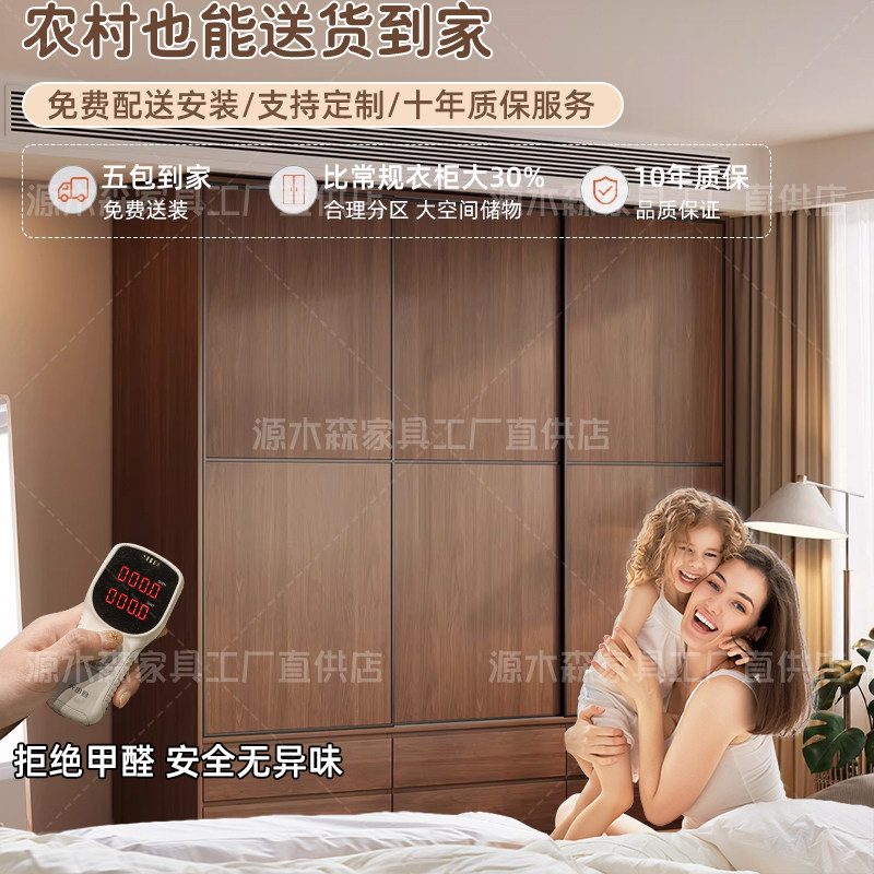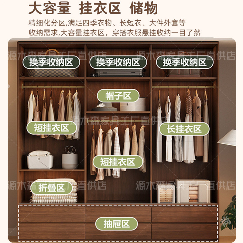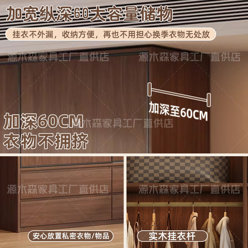 实木定制柜子中古风大衣柜落地衣橱储物一体衣柜组合柜多功能家用