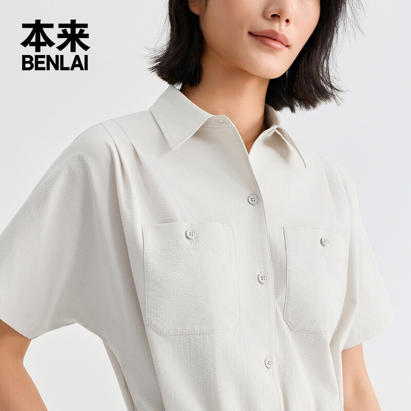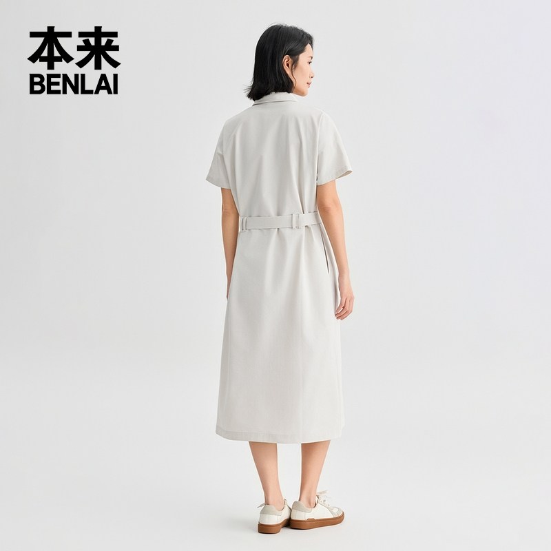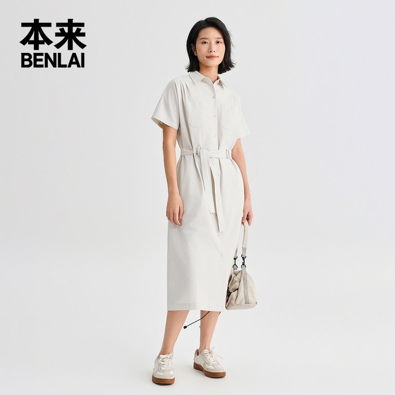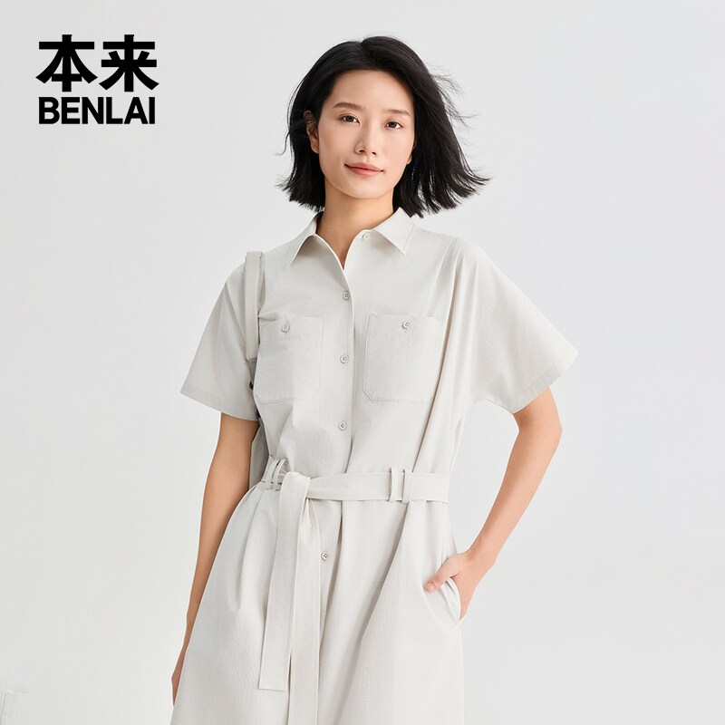 本来BENLAI女士抗皱短袖衬衫裙收腰连衣裙2026春季新款BNR760001