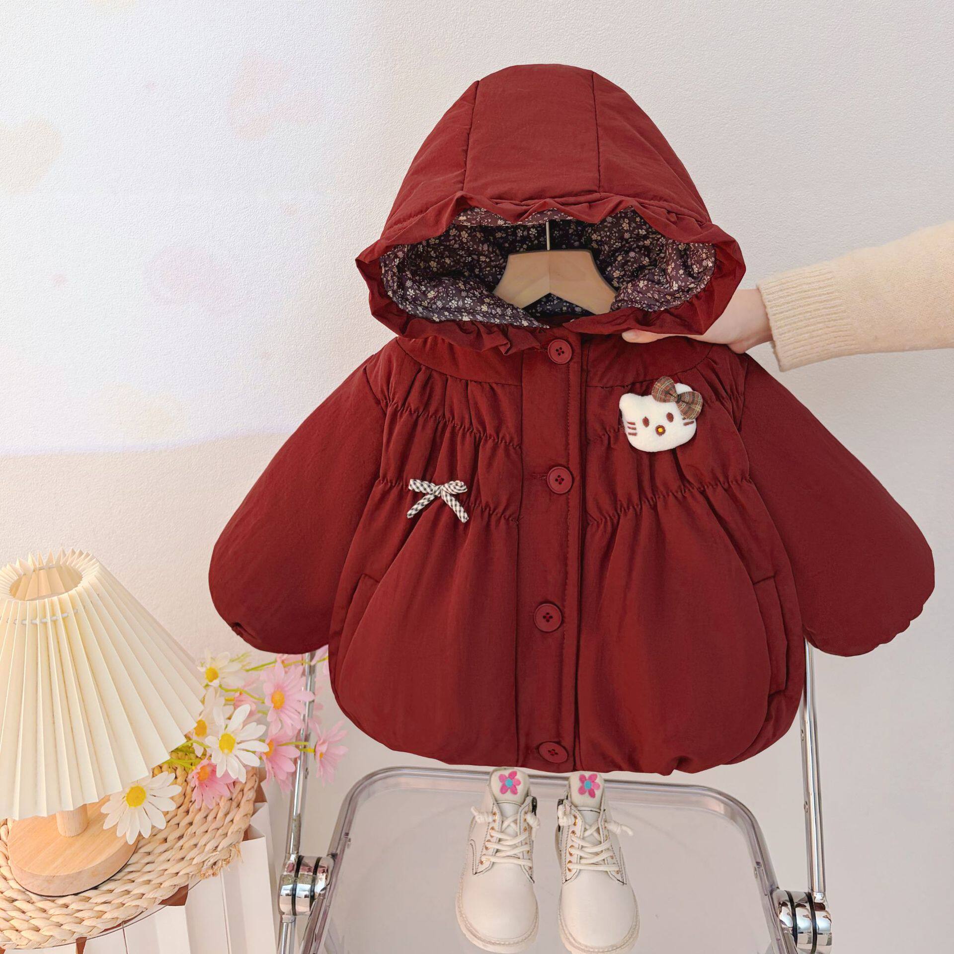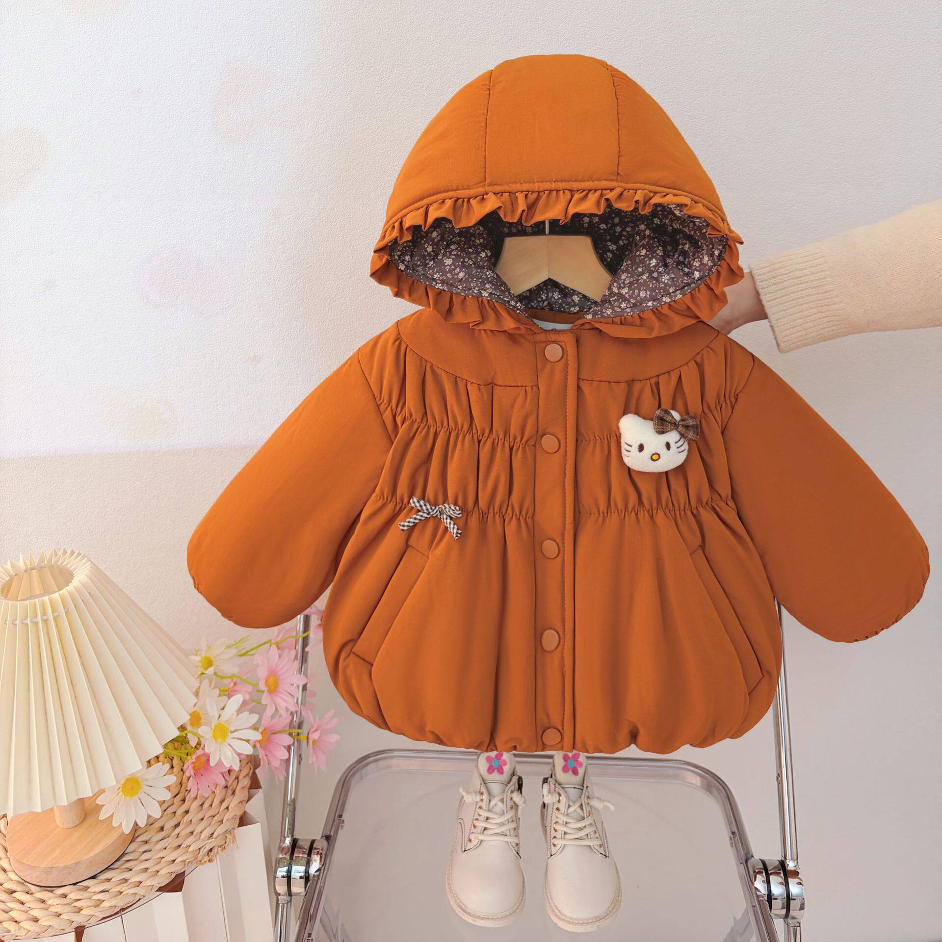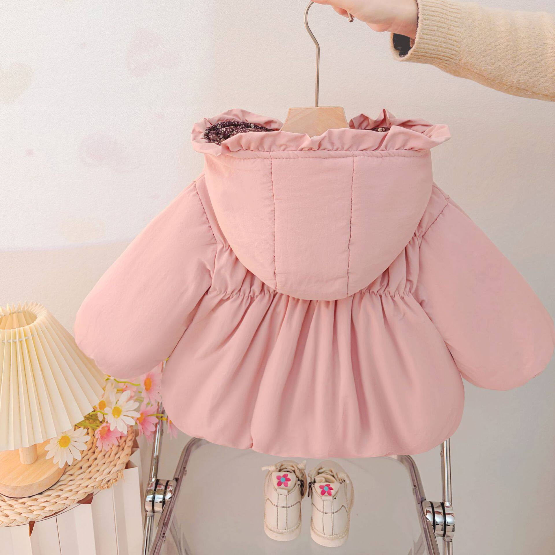 女童加绒加厚棉服2025新款女宝宝冬季洋气连帽保暖外套外穿棉袄