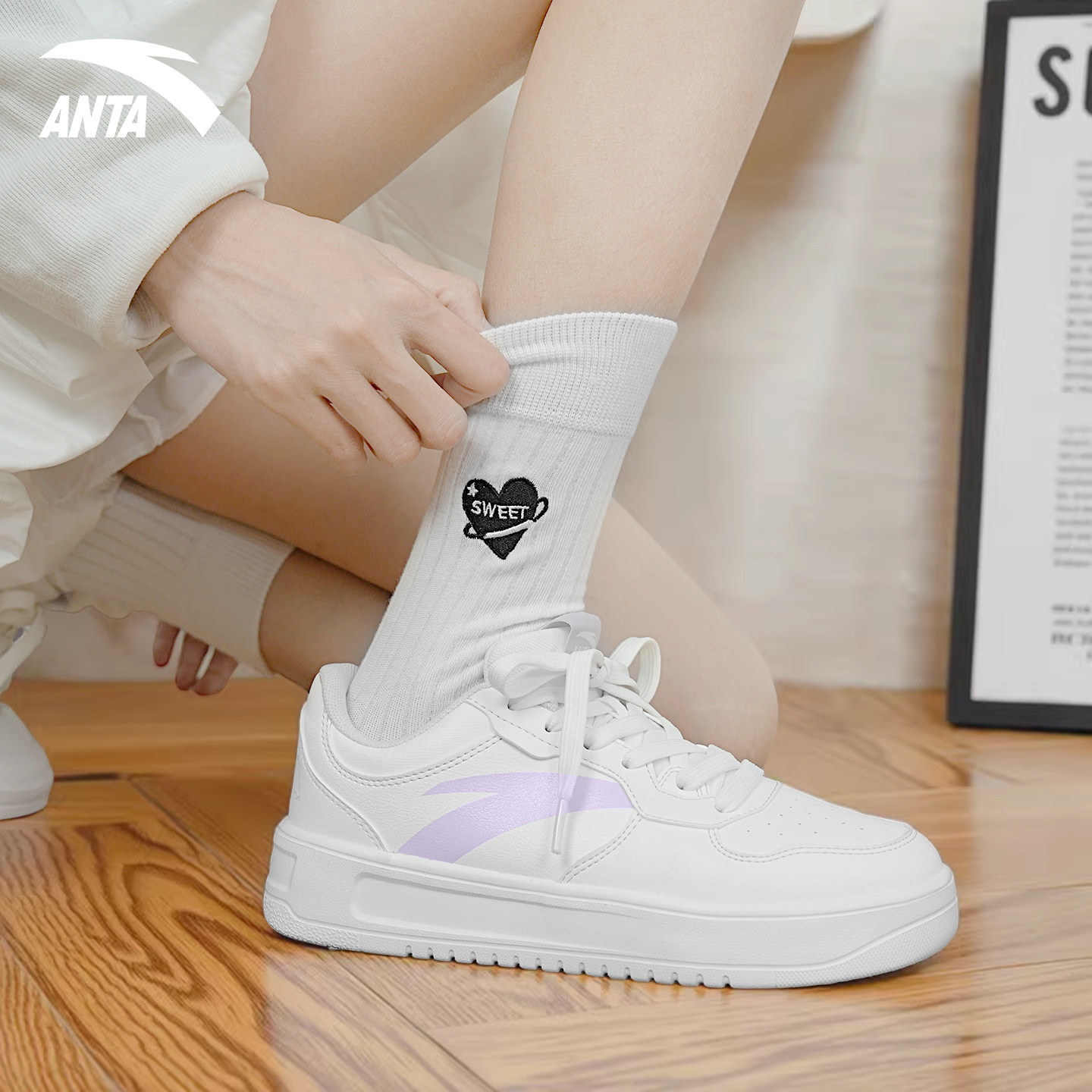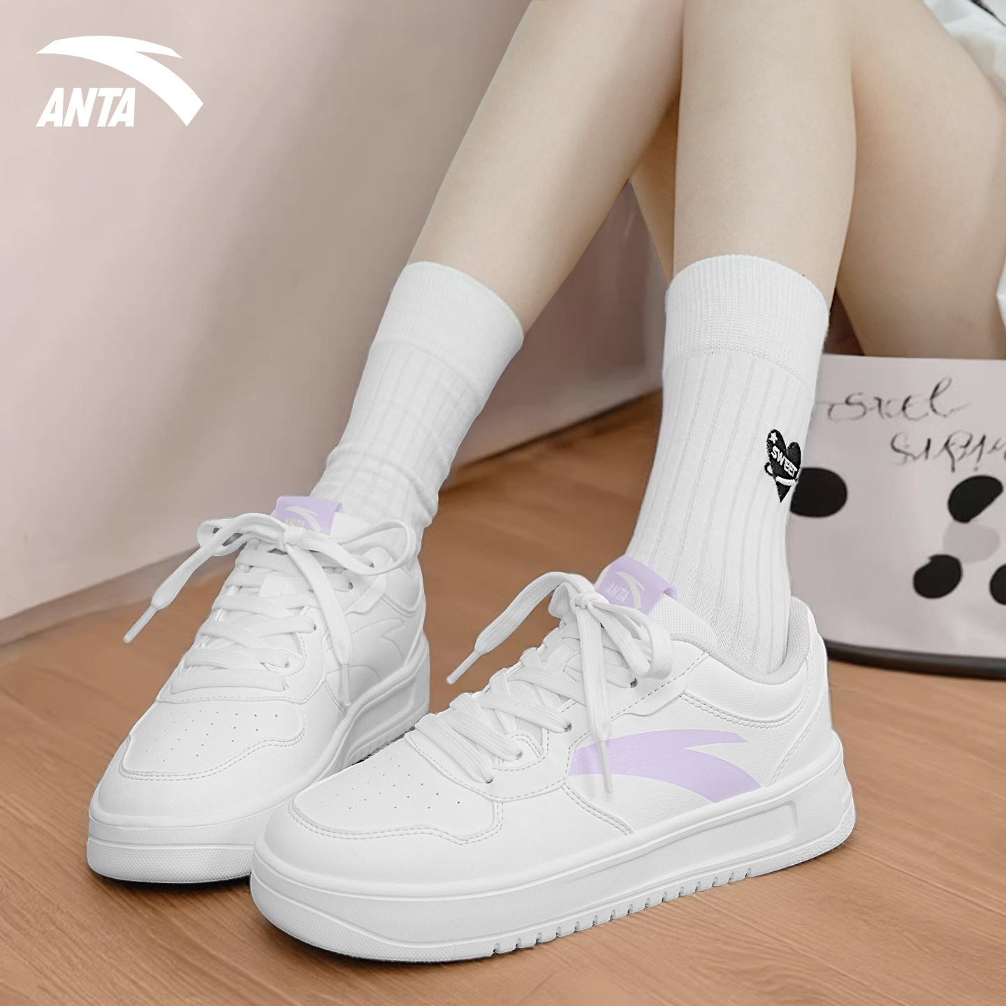 安踏板鞋轻松女鞋2026季新款低帮小白鞋初中学生青少年夏季休闲鞋