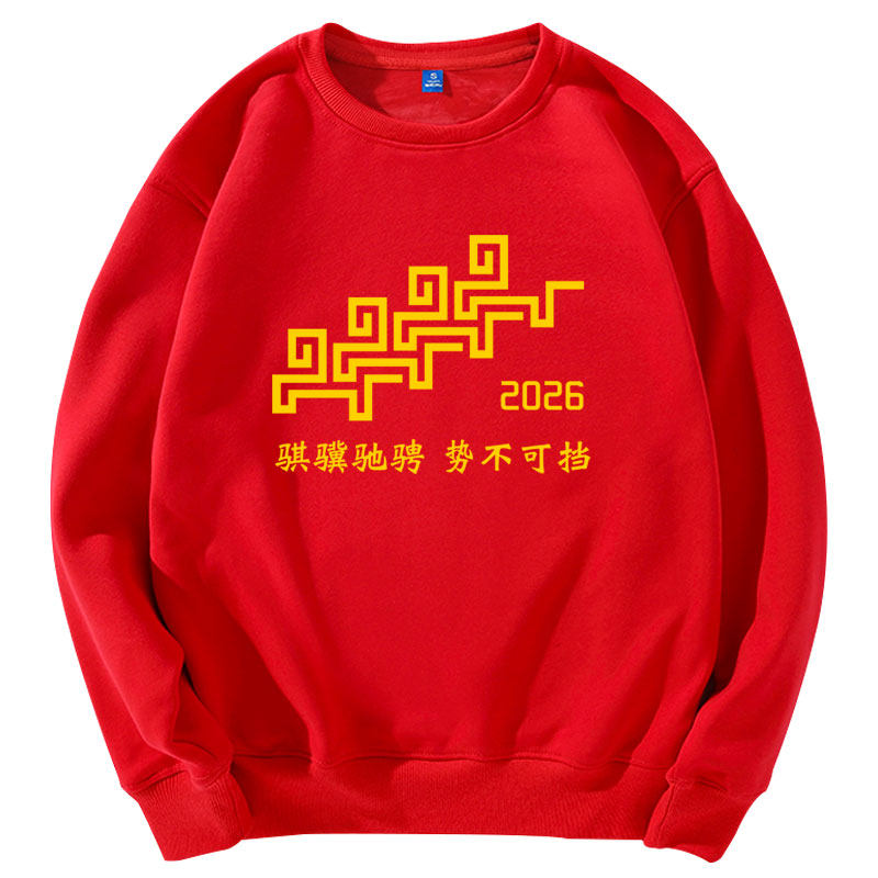 2026央视春晚马年吉祥物骐骥驰骋势不可挡红色衣服加绒卫衣新年服