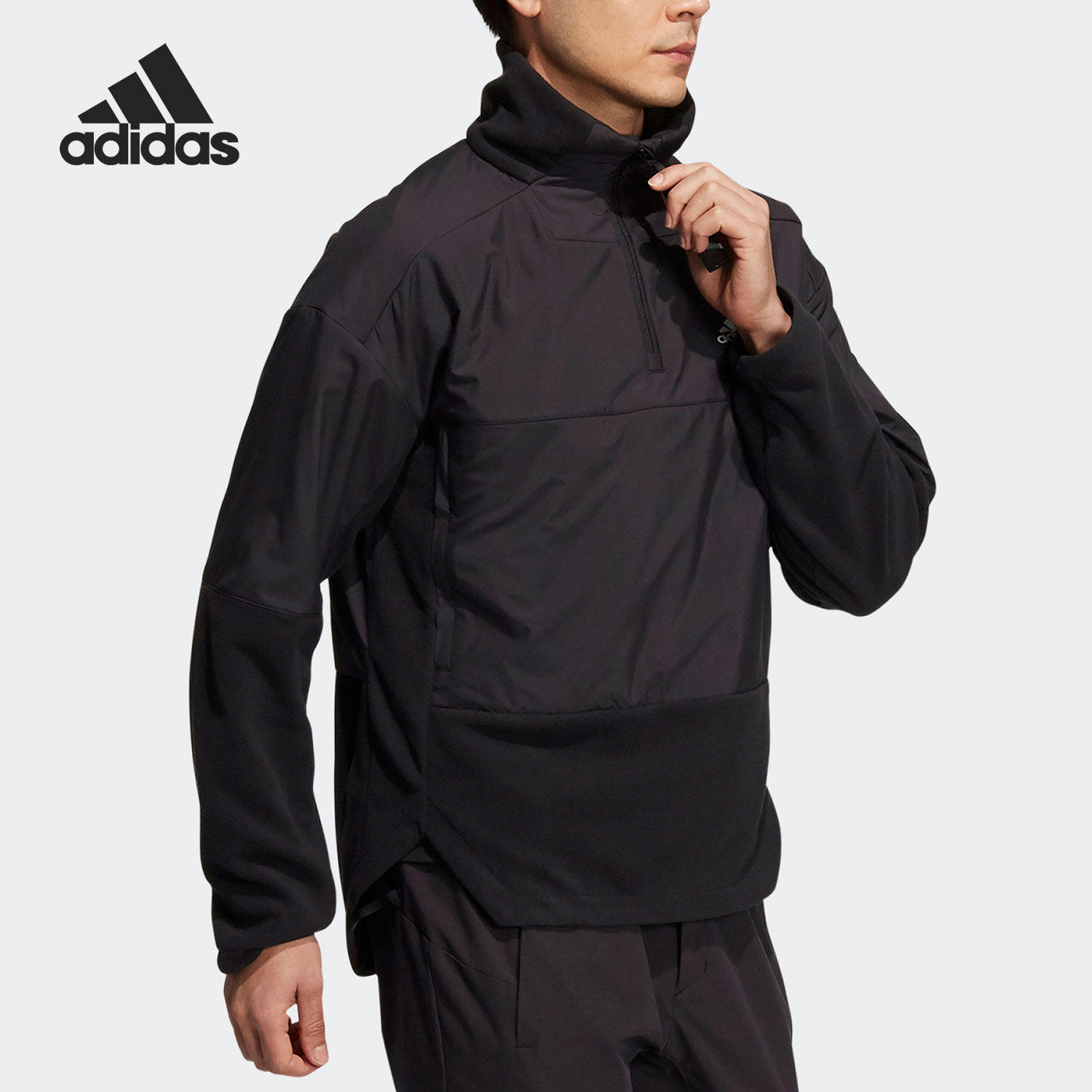 Adidas/阿迪达斯正品户外男女同款宽松半拉链立领卫衣H13788