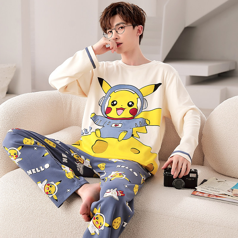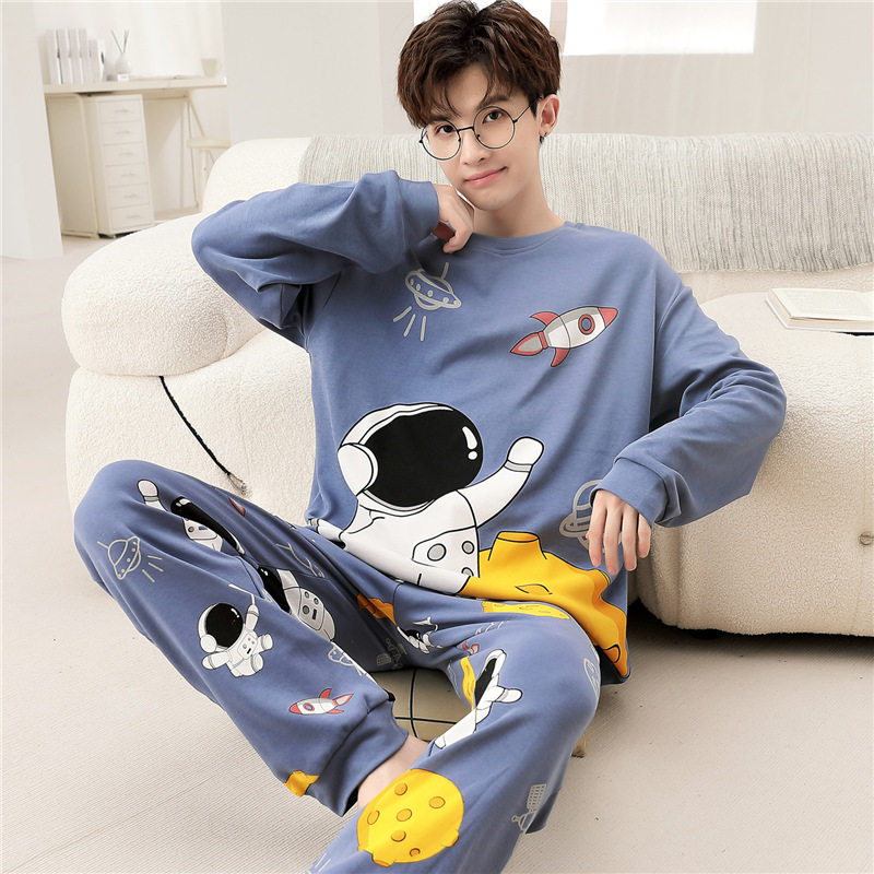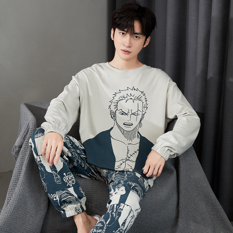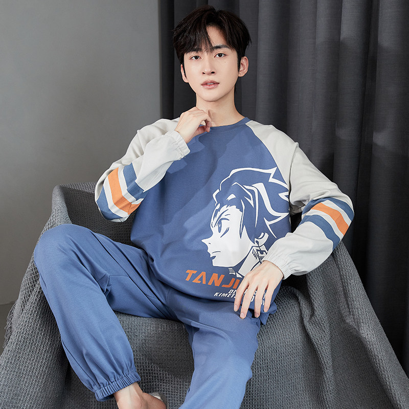 纯棉男士睡衣春秋季长袖纯棉薄款青少年动漫篮球家居服套装大码冬
