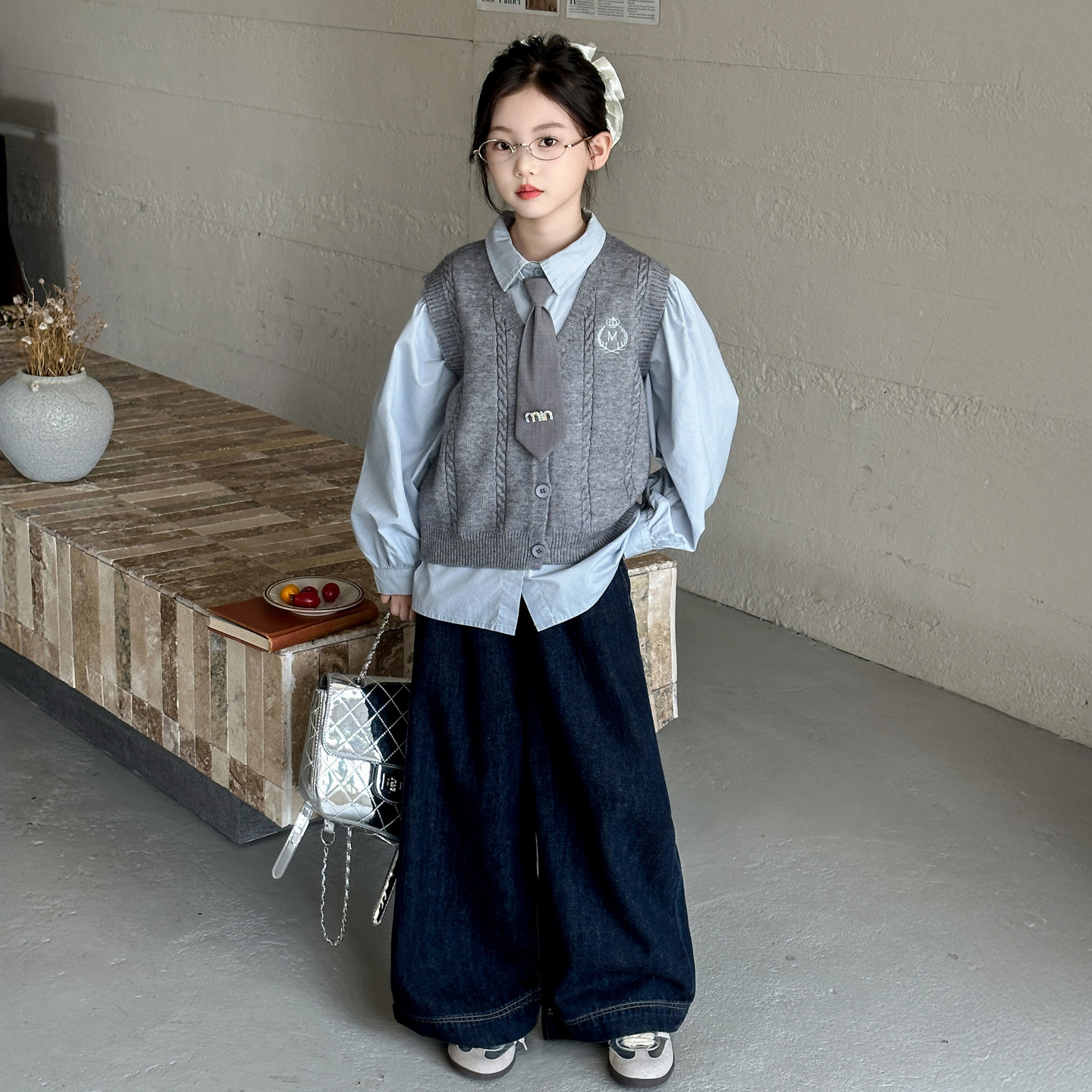女童毛衣马甲春秋2025新款儿童超好看针织衫女大童早秋学院风套装