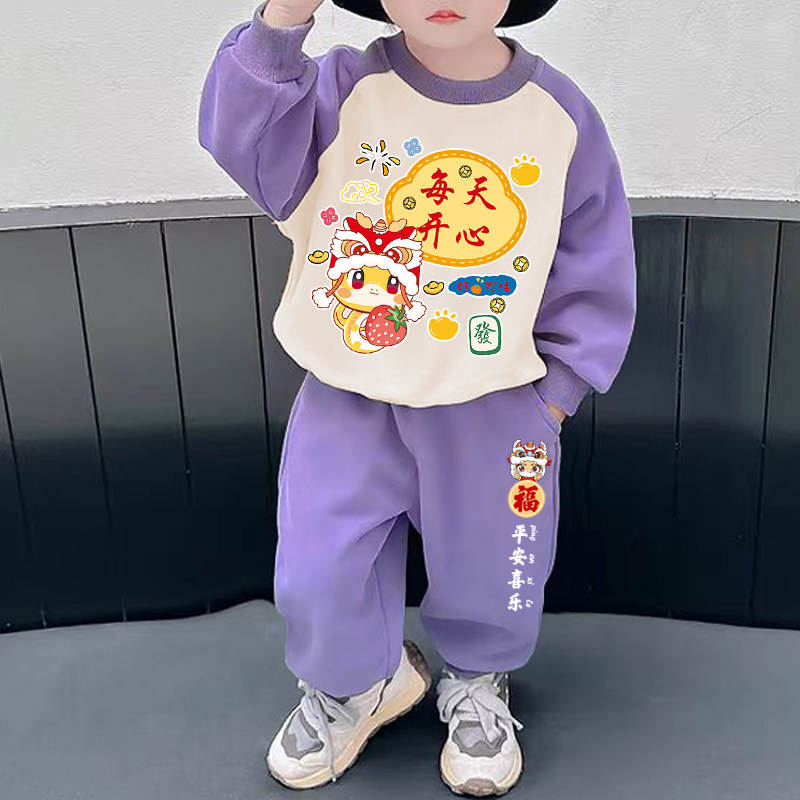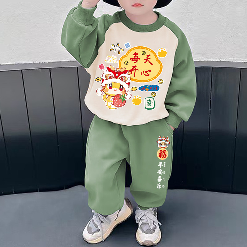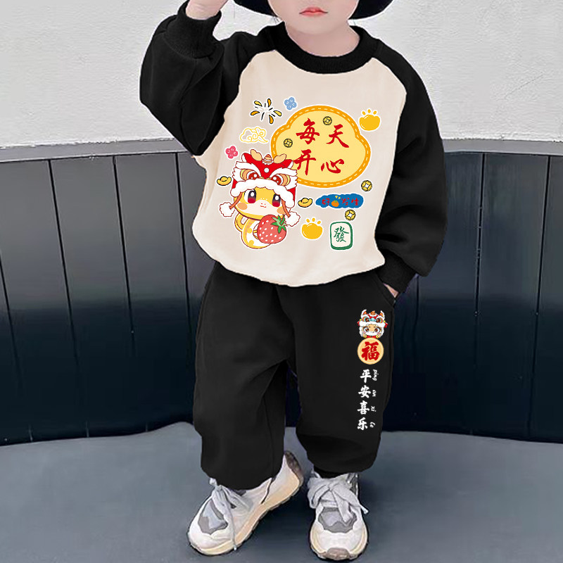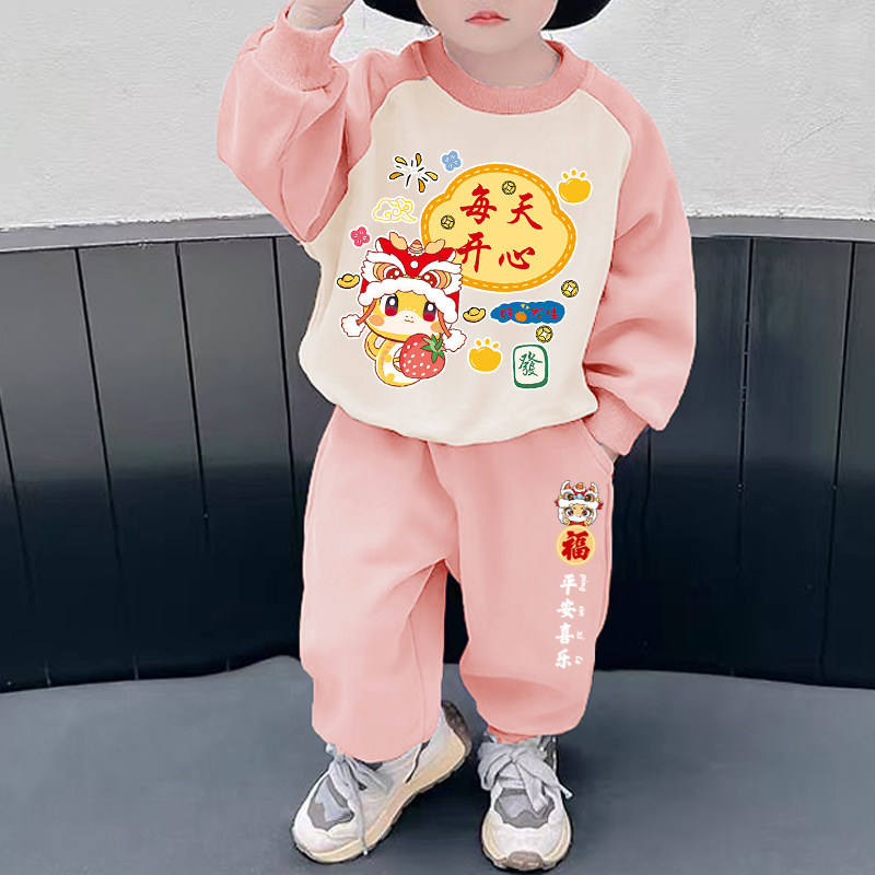 儿童新年套装2026新款男女童蛇年拜年服中小童春秋卫衣卫裤两件套