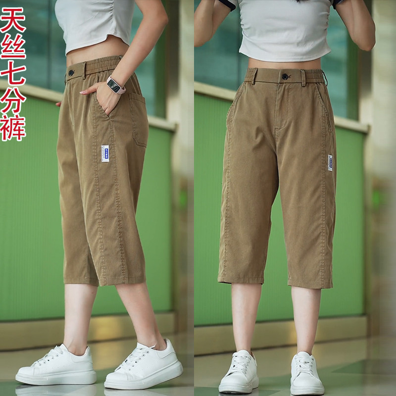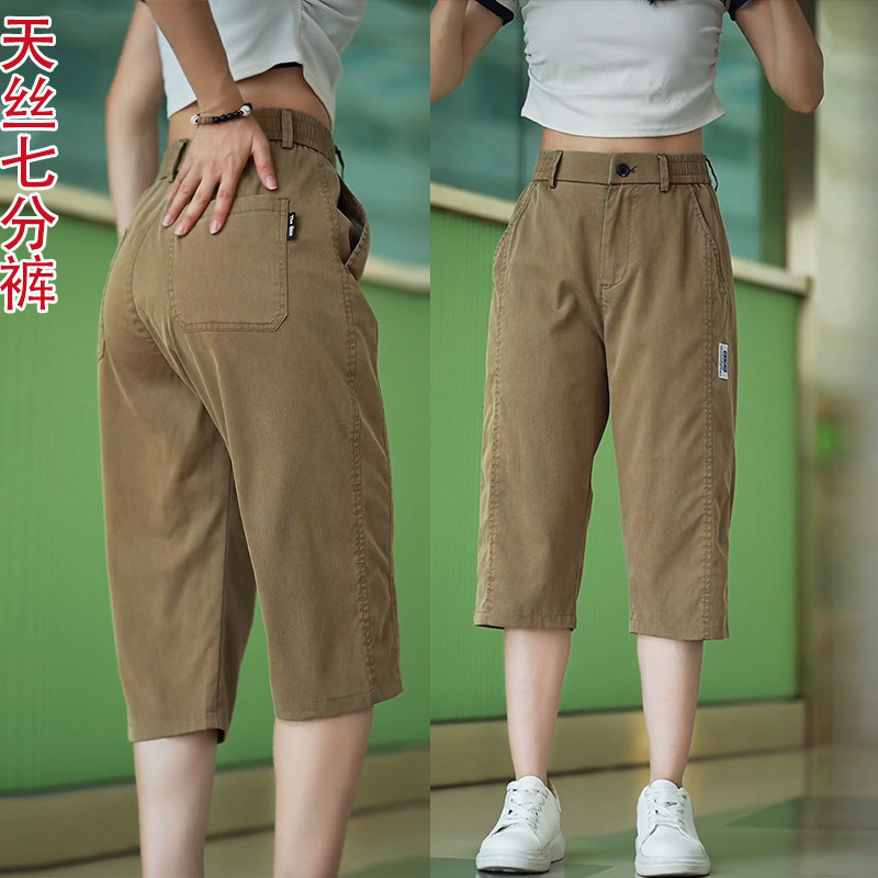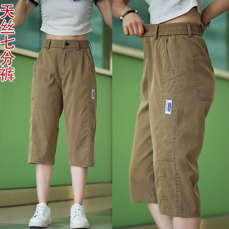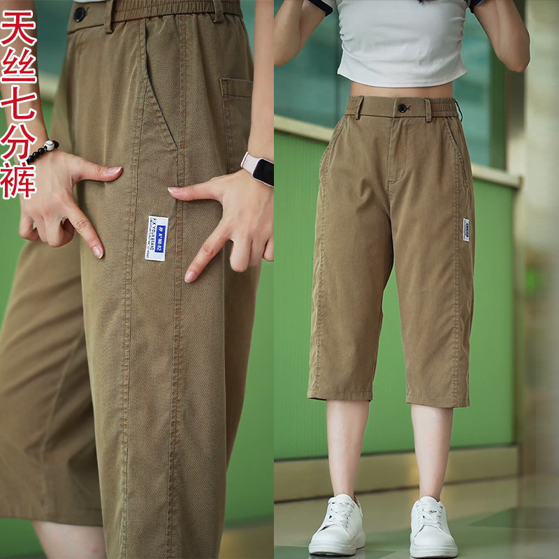 夏季薄款天丝休闲短裤男款潮流百搭七分冰丝马裤夏天运动67分中裤