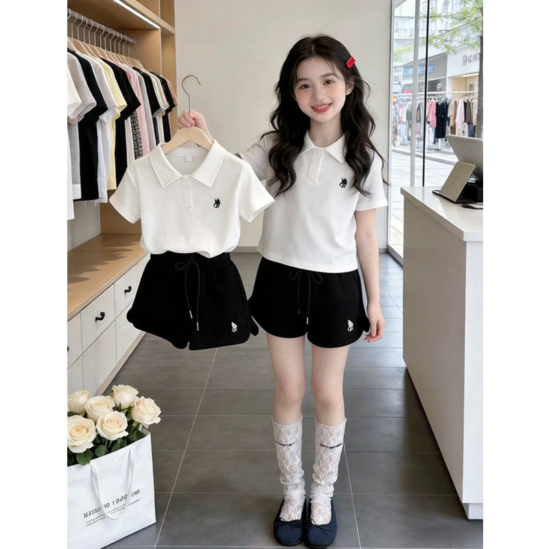 女童短袖套装夏季2026新款儿童Polo衫t恤小童运动短裤上衣两件套