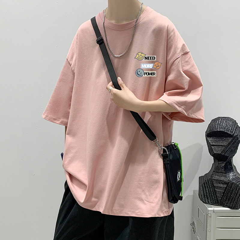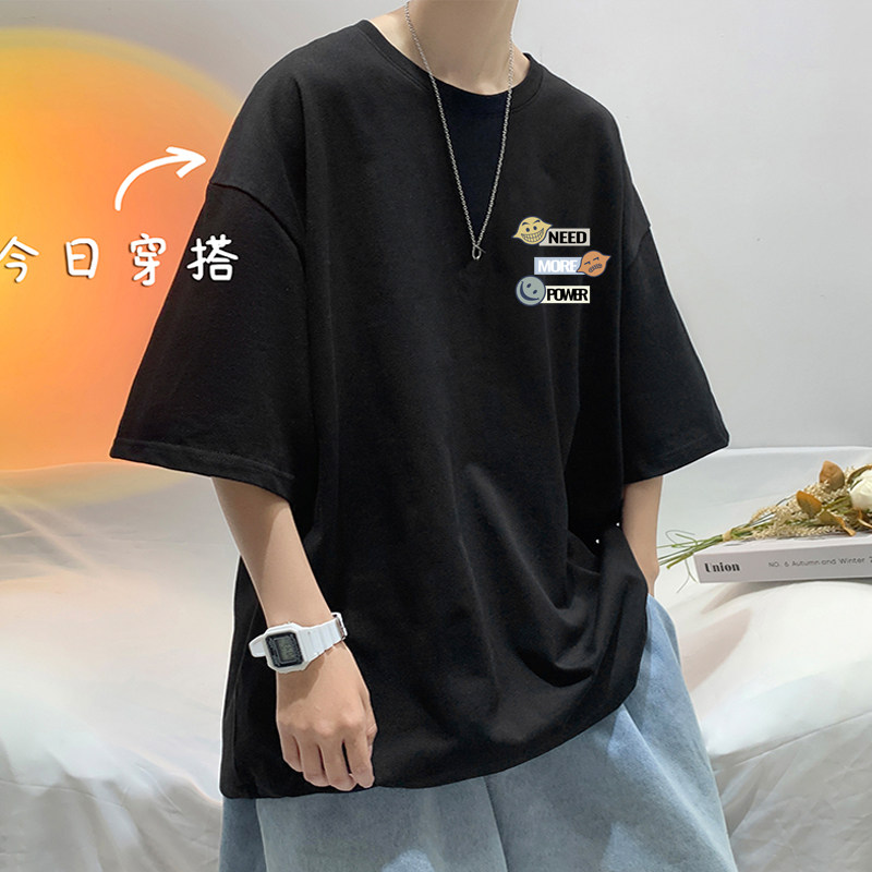 青少年夏装纯棉白色体袖T恤宽松大码男初中生夏季上衣ins潮牌短袖