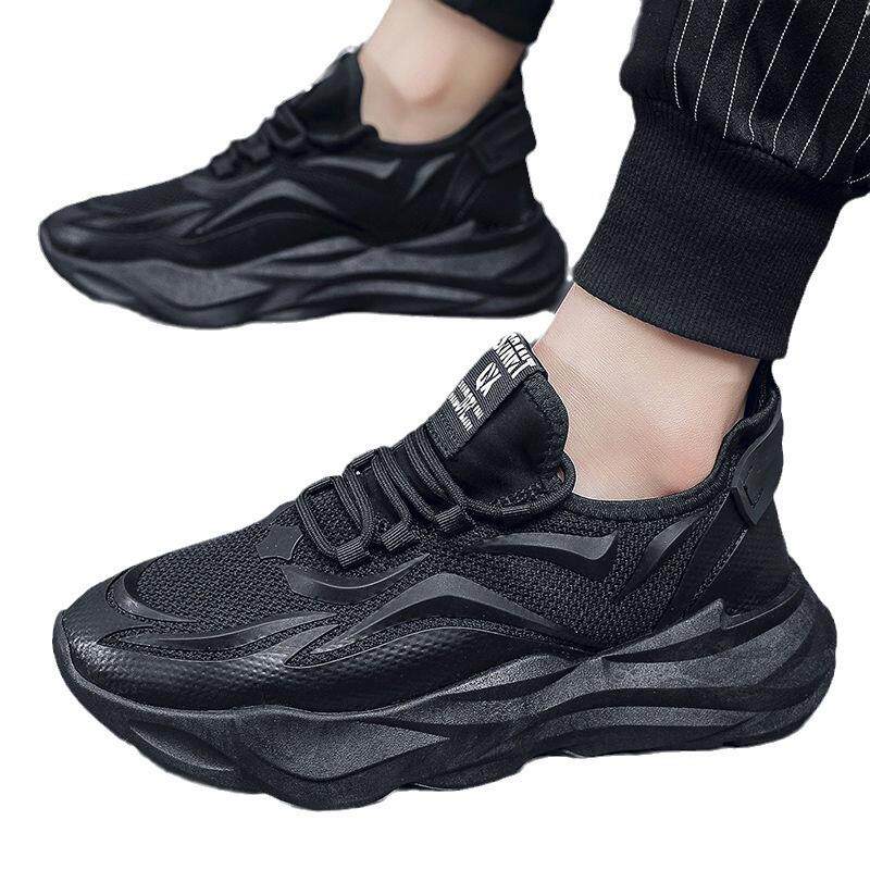 黑色男鞋夏季透气男士工作劳保鞋厚底老爹鞋男款网面休闲运动网鞋