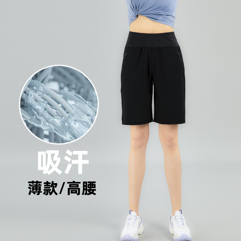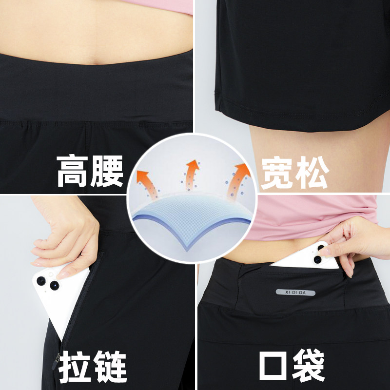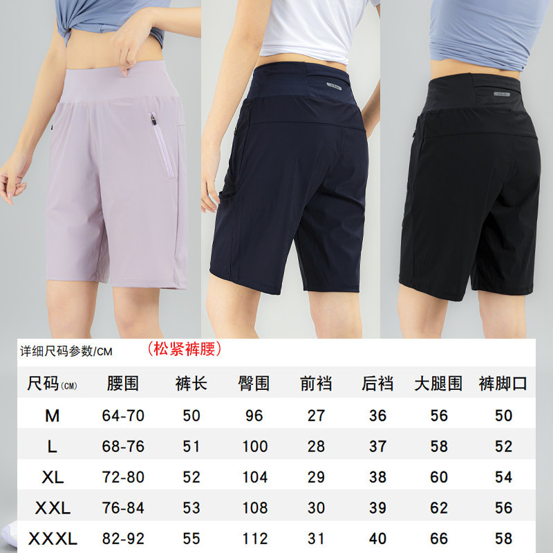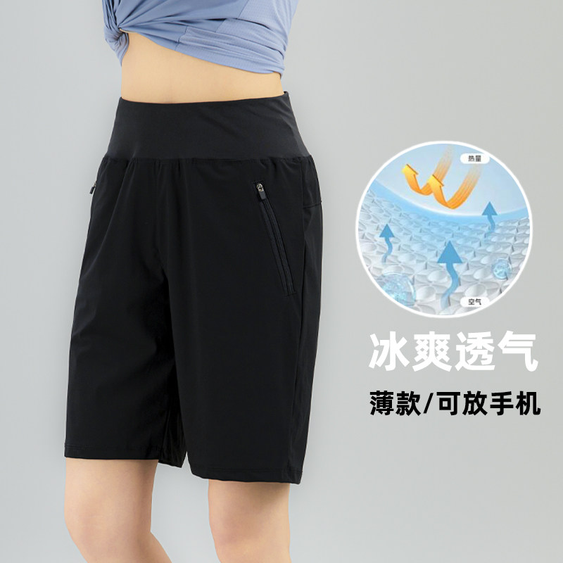 五分运动短裤女跑步速干冰丝5分裤中考马拉松百搭压力裤带腰包裤