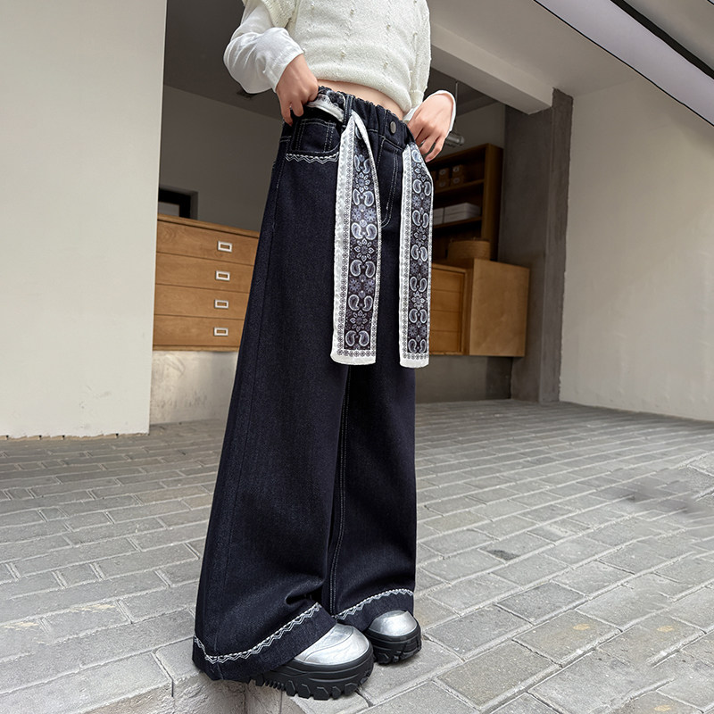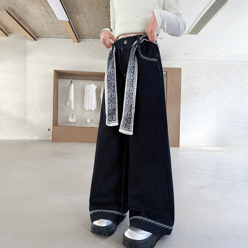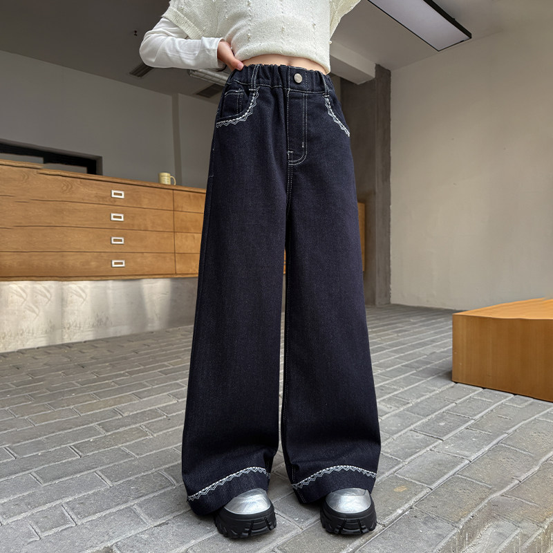 女童牛仔裤初中生女孩阔腿裤春季巨好看女大童裤子春款儿童休闲裤
