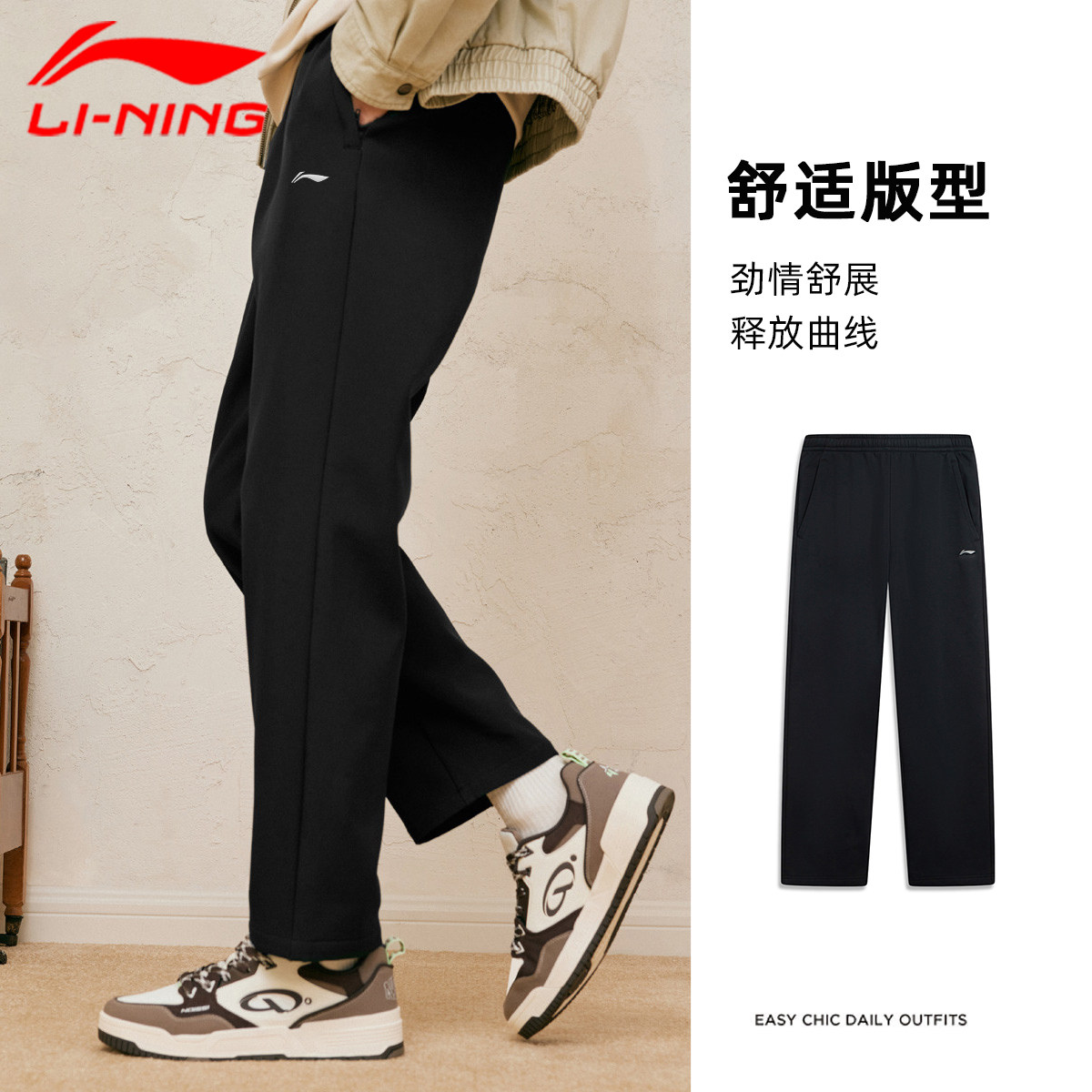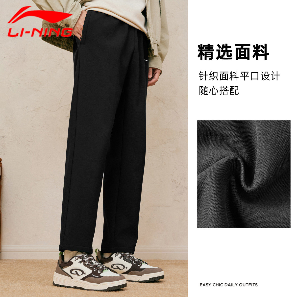 李宁青少年裤子男运动裤2026新款春秋男款直筒初中生高个子加长裤